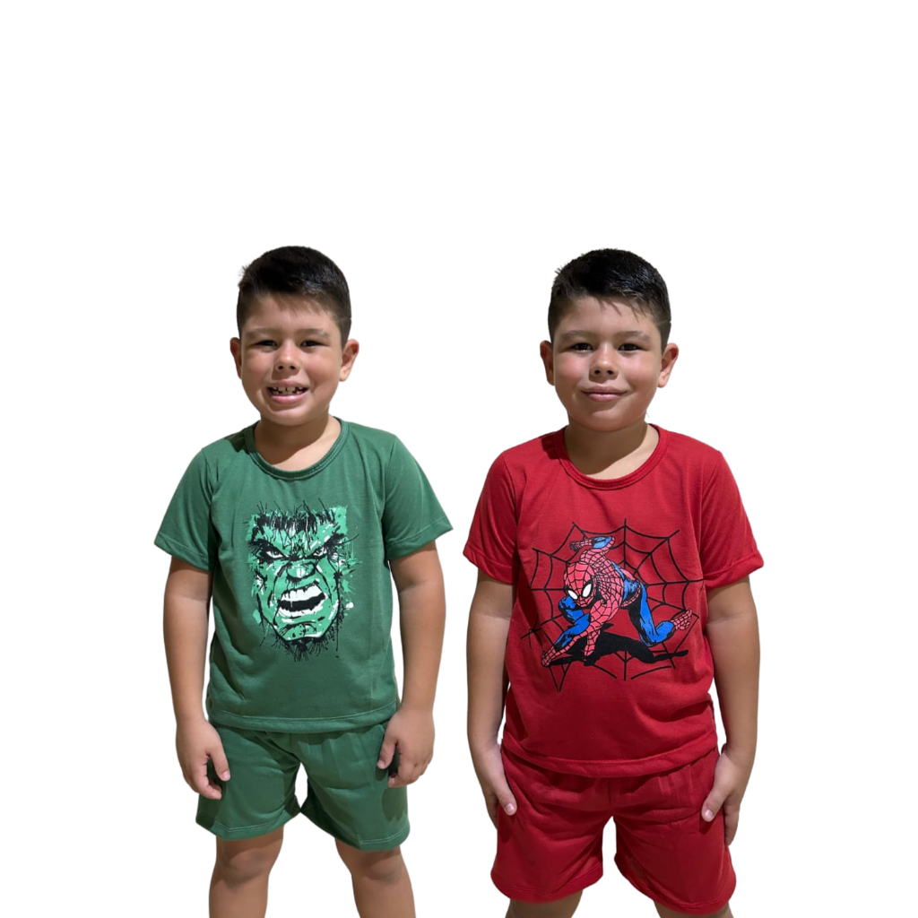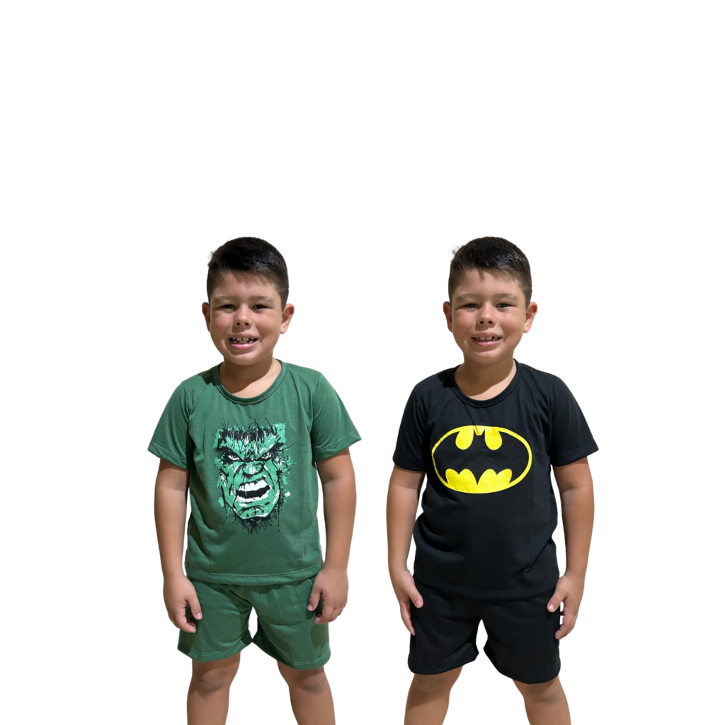 Kit 2 Pijamas Infantil Masculino Super-Heróis Estampado Confortável Leve Promoção