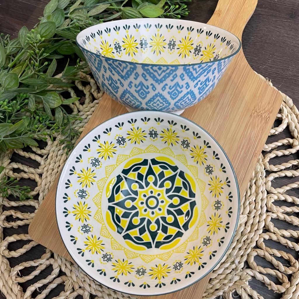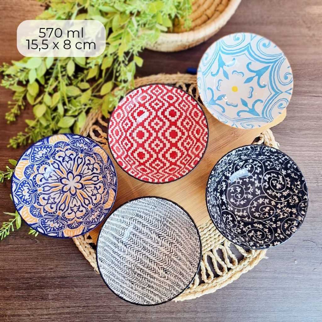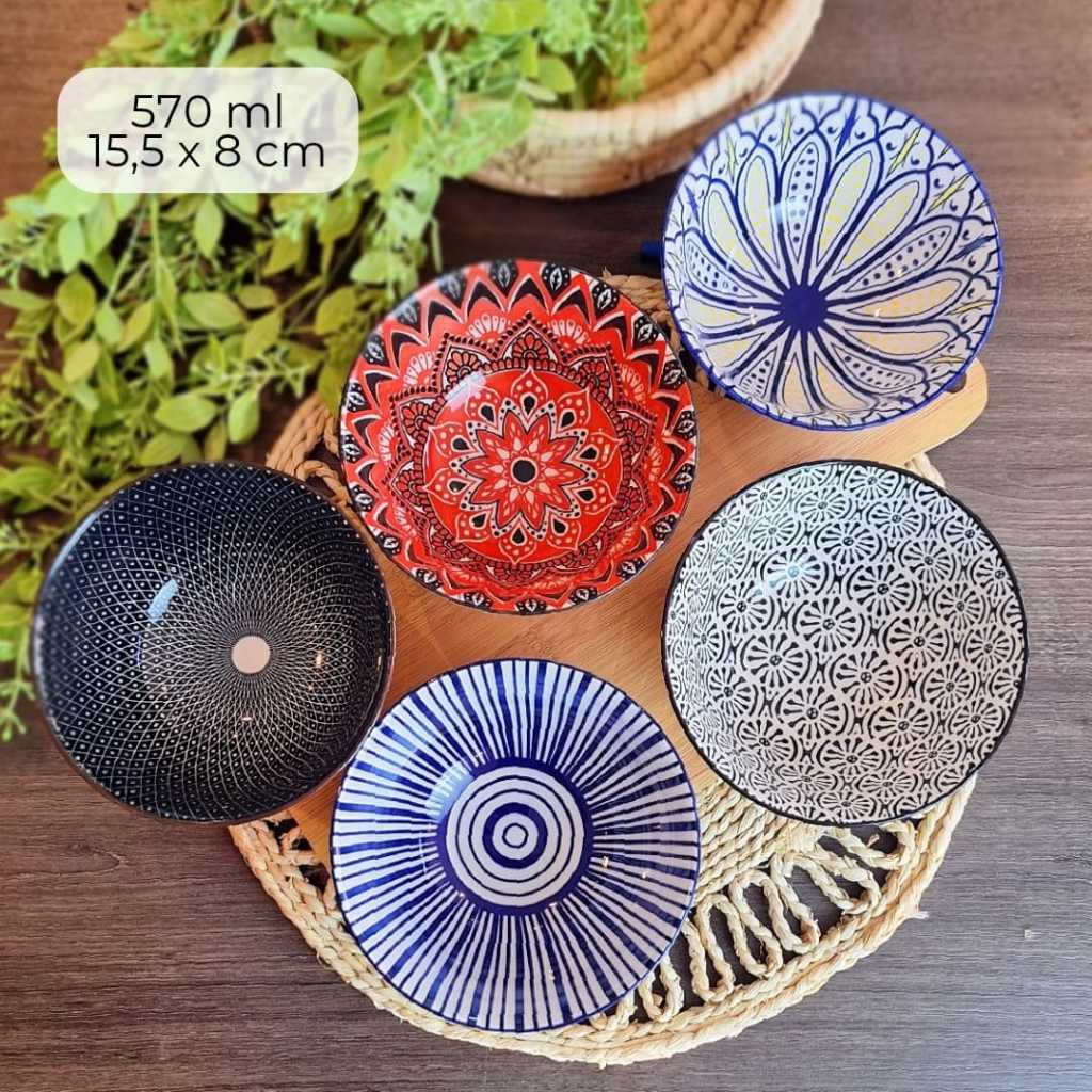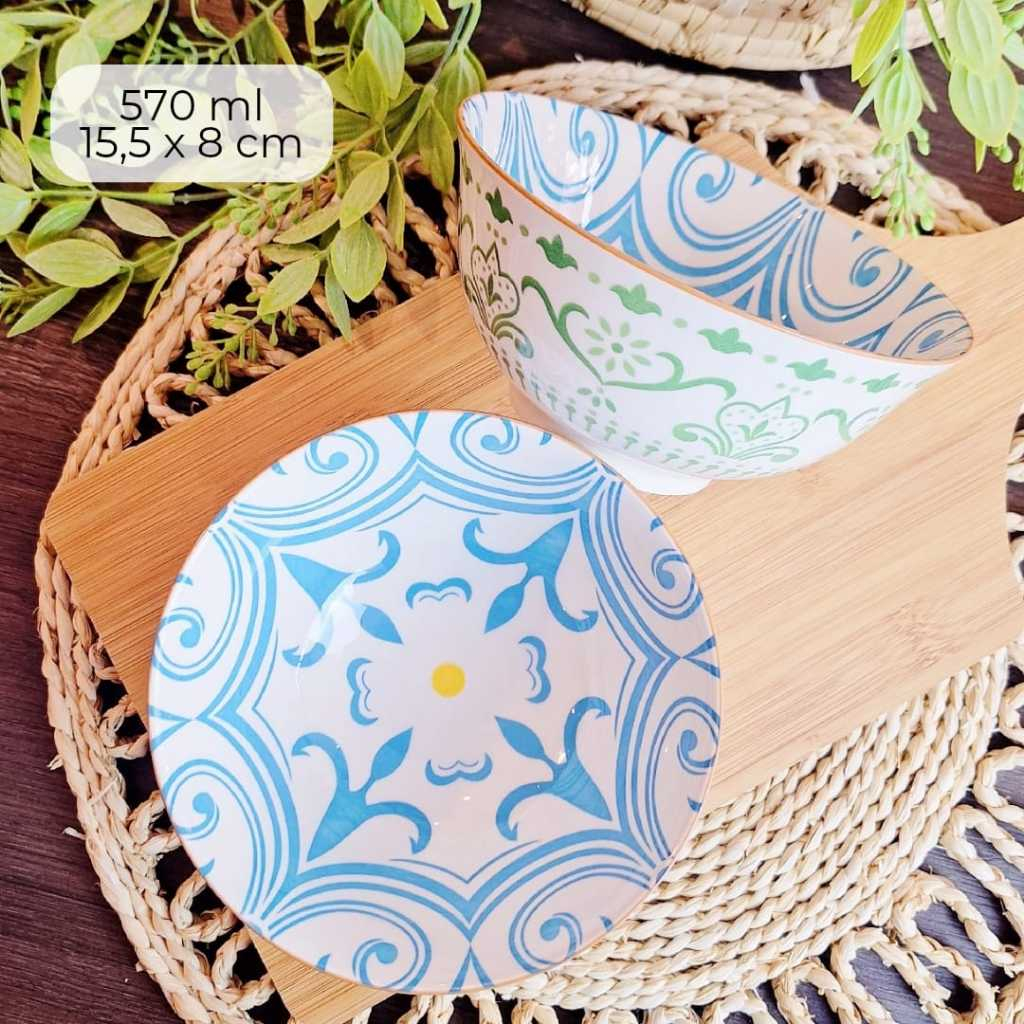 KIT C/ 4 TIGELA bowl cambuca porcelana estampado sopa caldos sobremesas cereais multiuso 570ML