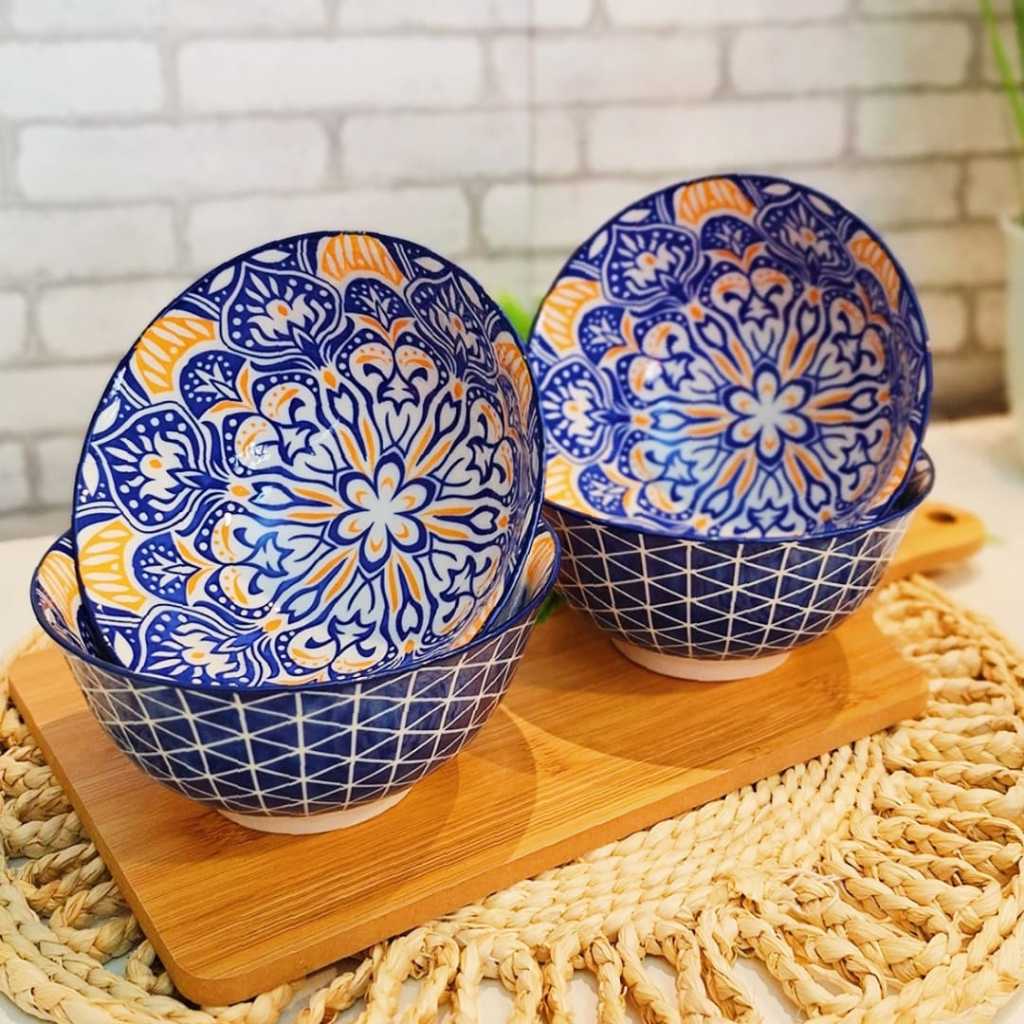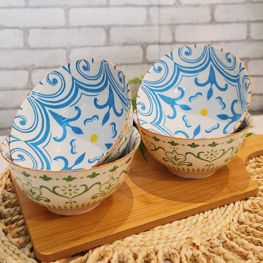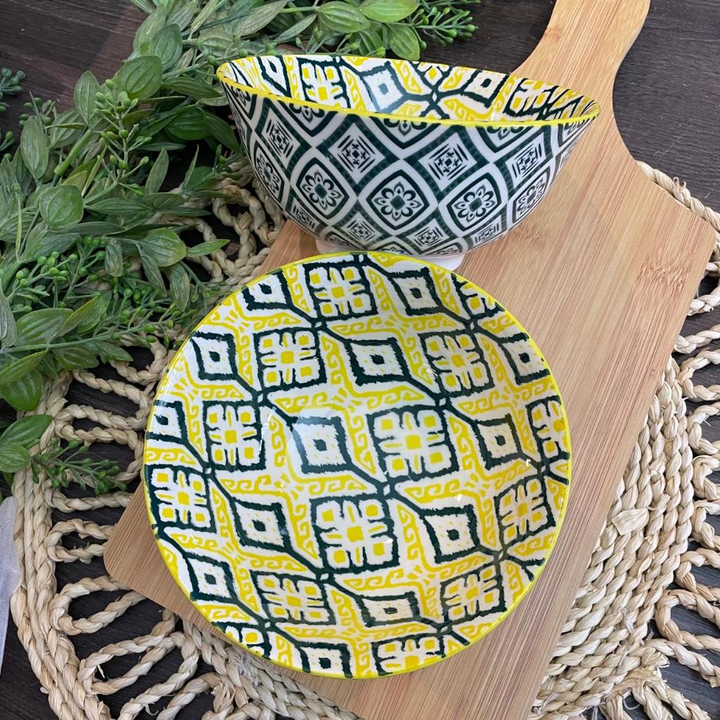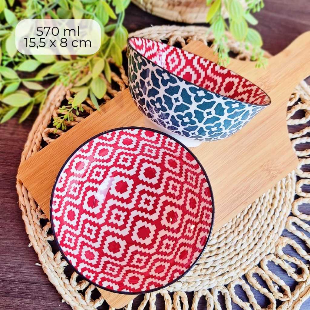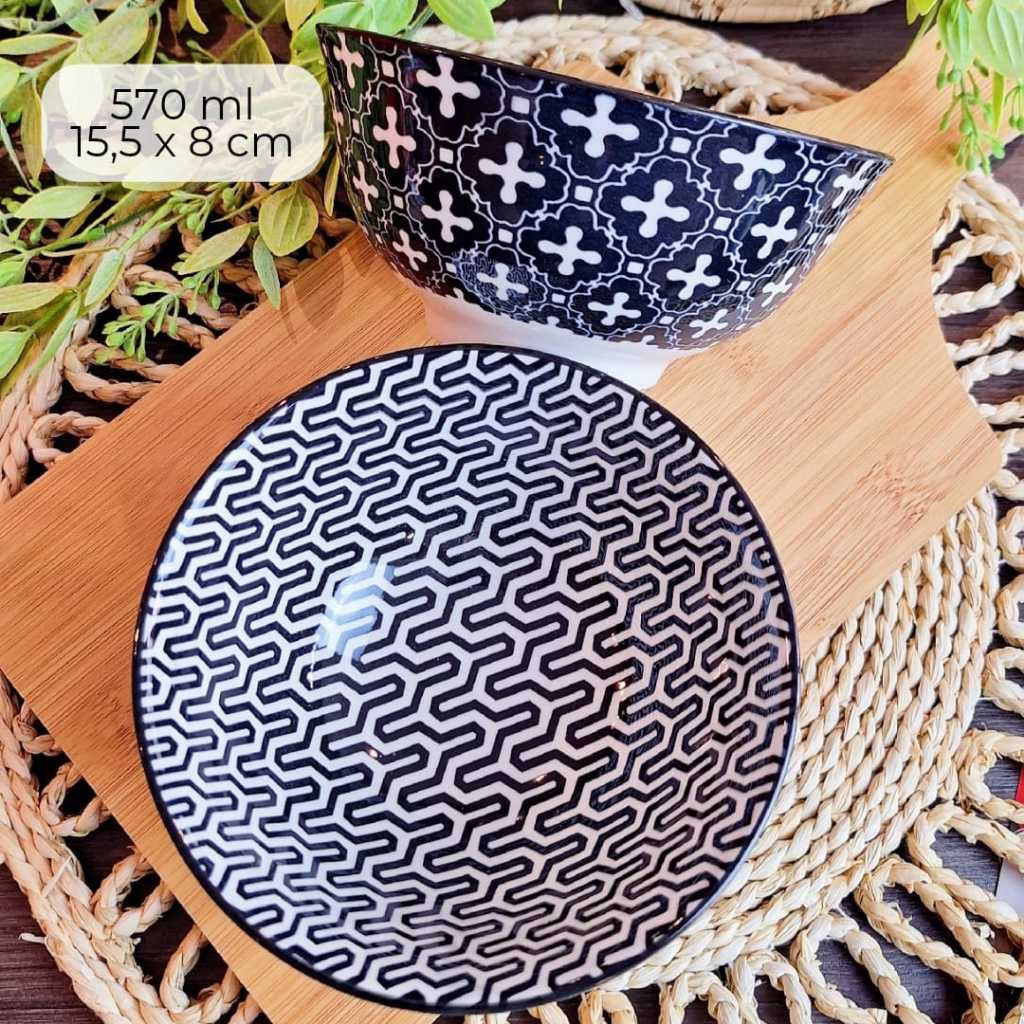 KIT C/ 4 TIGELA bowl cambuca porcelana estampado sopa caldos sobremesas cereais multiuso 570ML