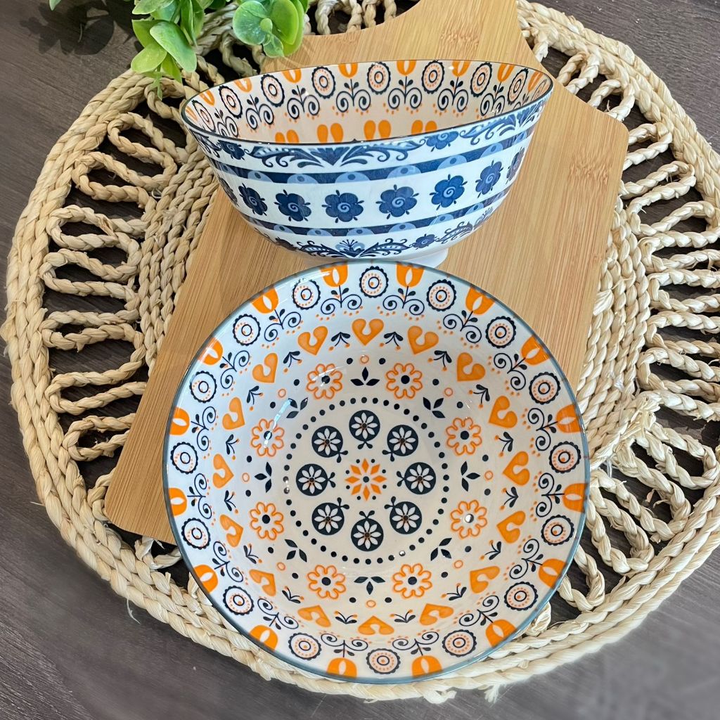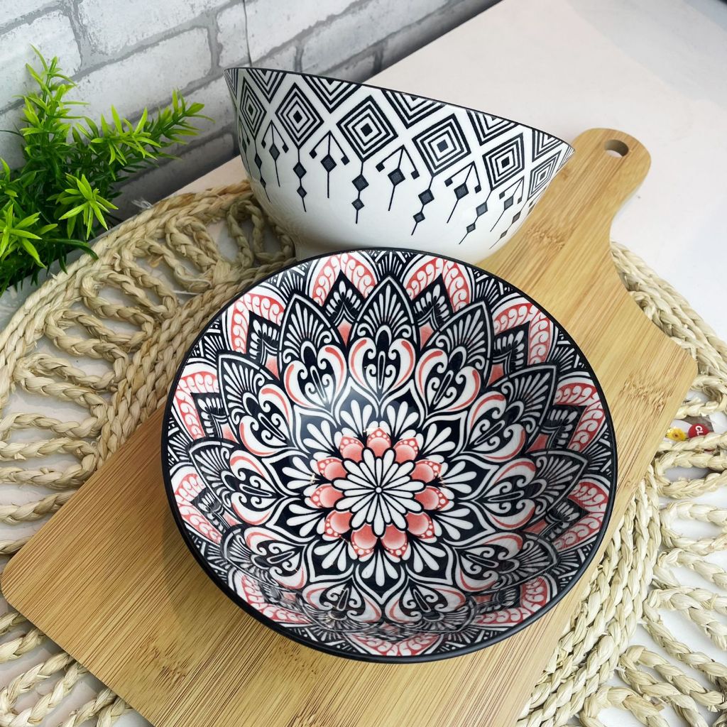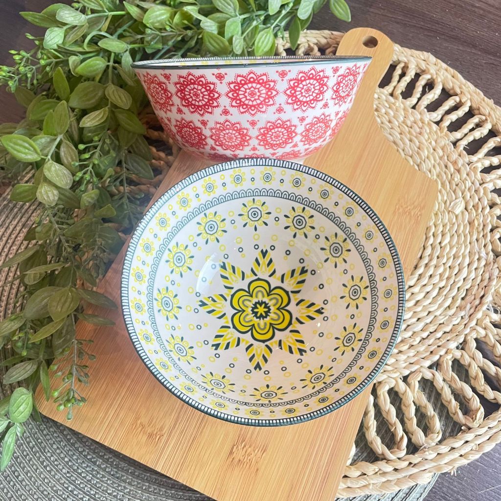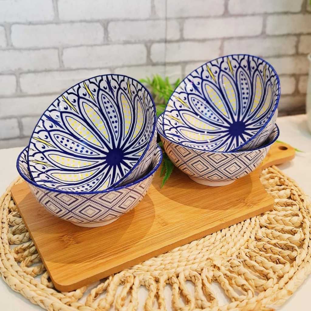 KIT C/ 4 TIGELA bowl cambuca porcelana estampado sopa caldos sobremesas cereais multiuso 570ML