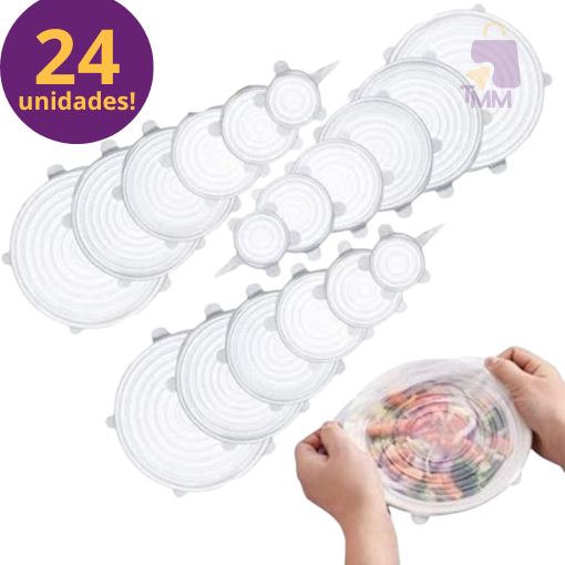 Kit Tampas de Silicone Reutilizáveis, Flexíveis, Elásticas e Resistentes.