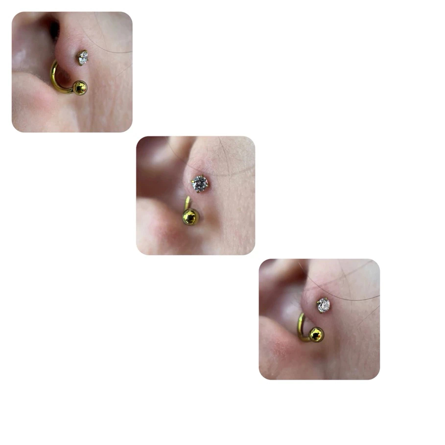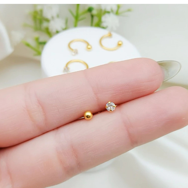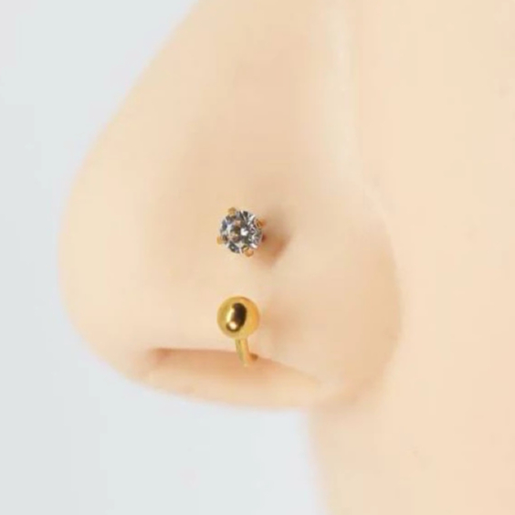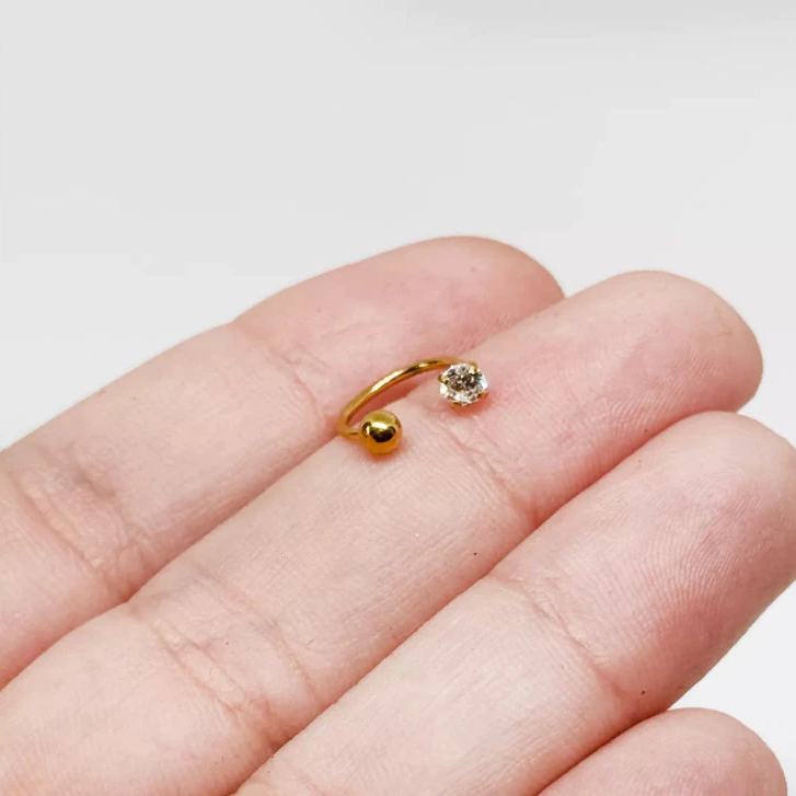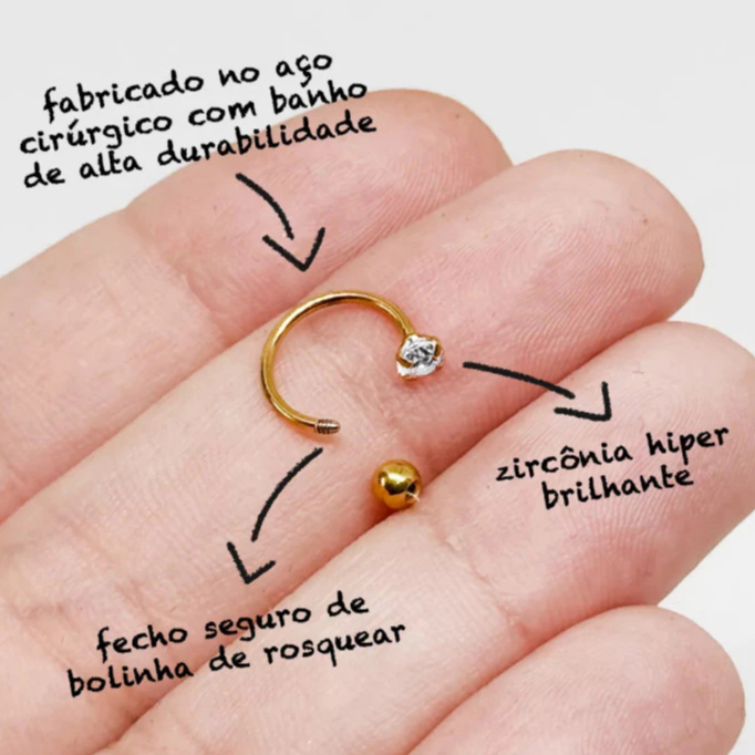 Piercing Ferradura Fina para Nariz Aço Gold com Zircônia