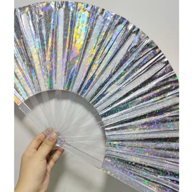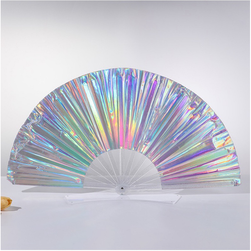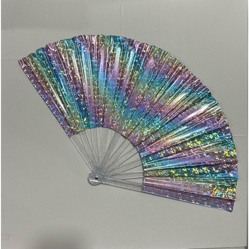 Leque Grande Brilho Holográfico Raves Baladas Festivais Show Carnaval Decoração