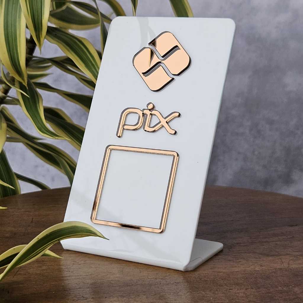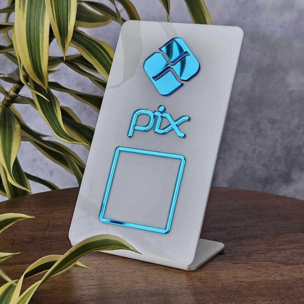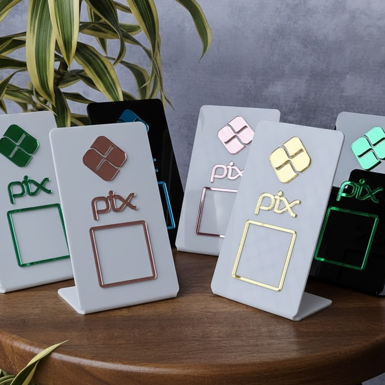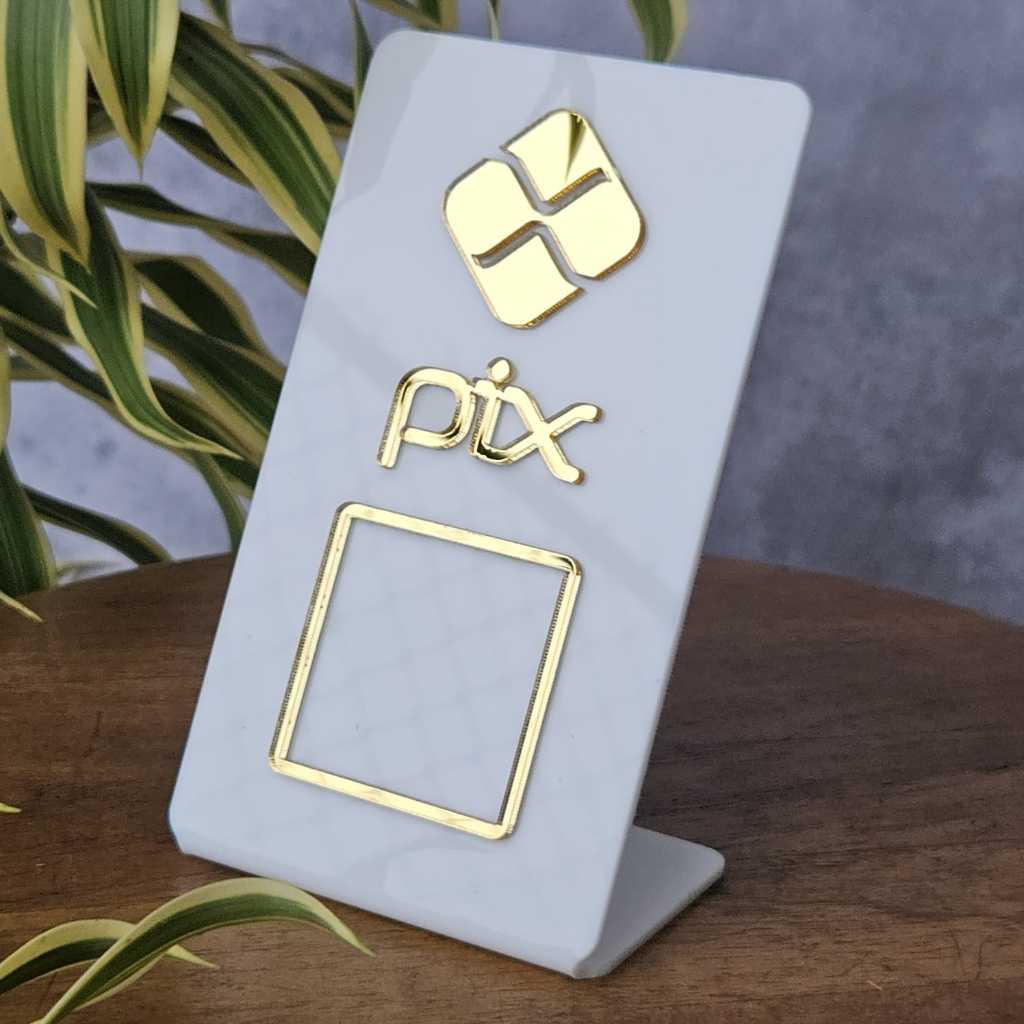 Placa PIX Acrílica QR Code Display de Mesa Pagamento Digital Loja Restaurante Balcão