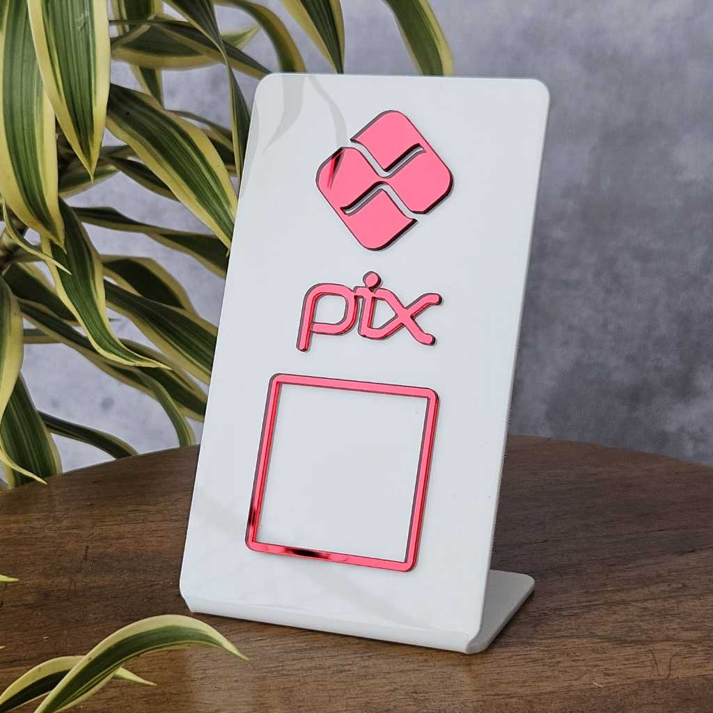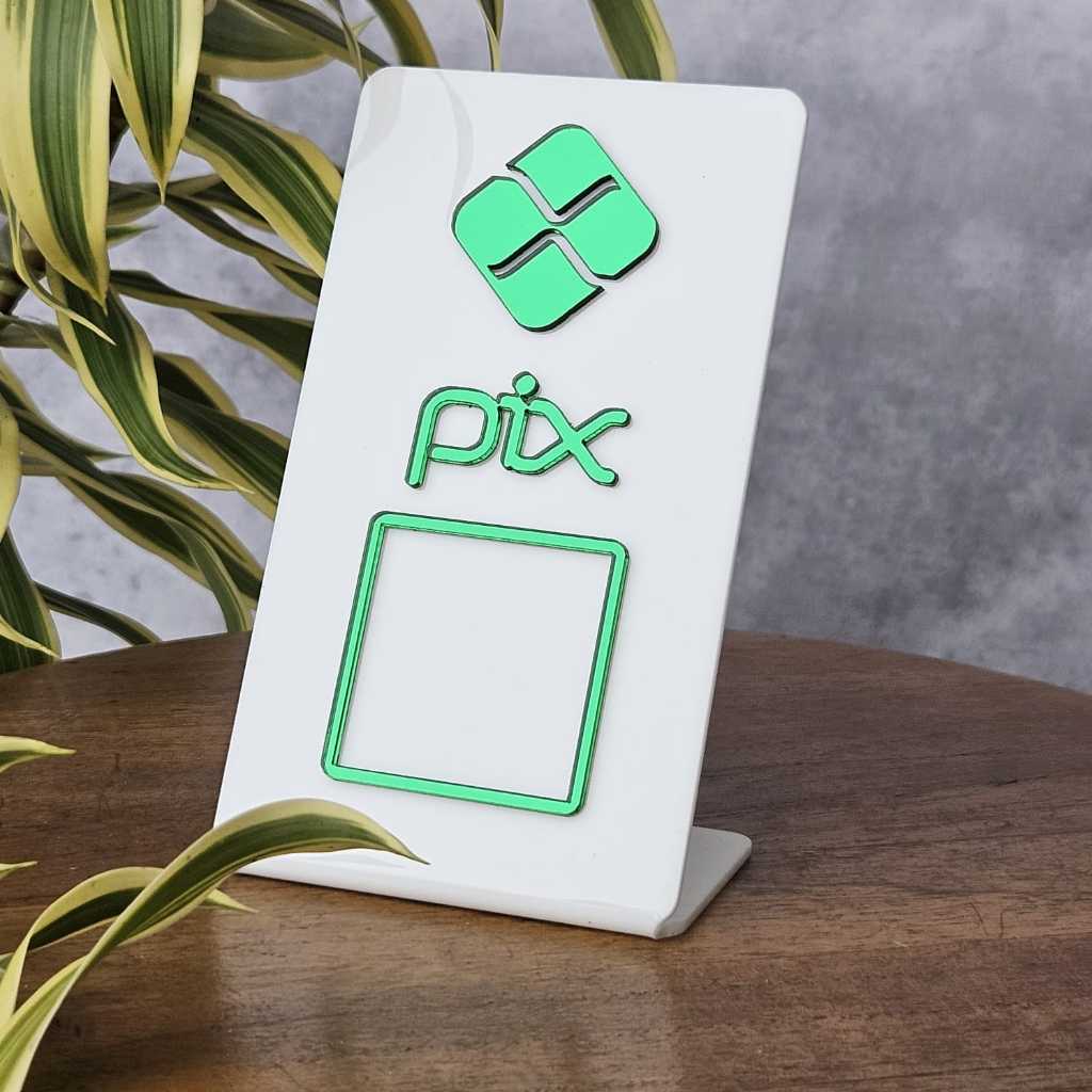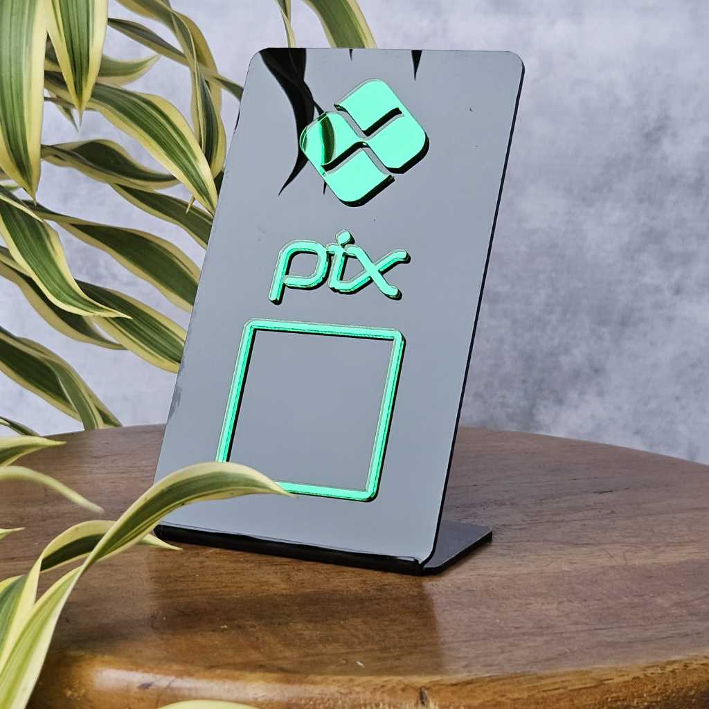Placa PIX Acrílica QR Code Display de Mesa Pagamento Digital Loja Restaurante Balcão