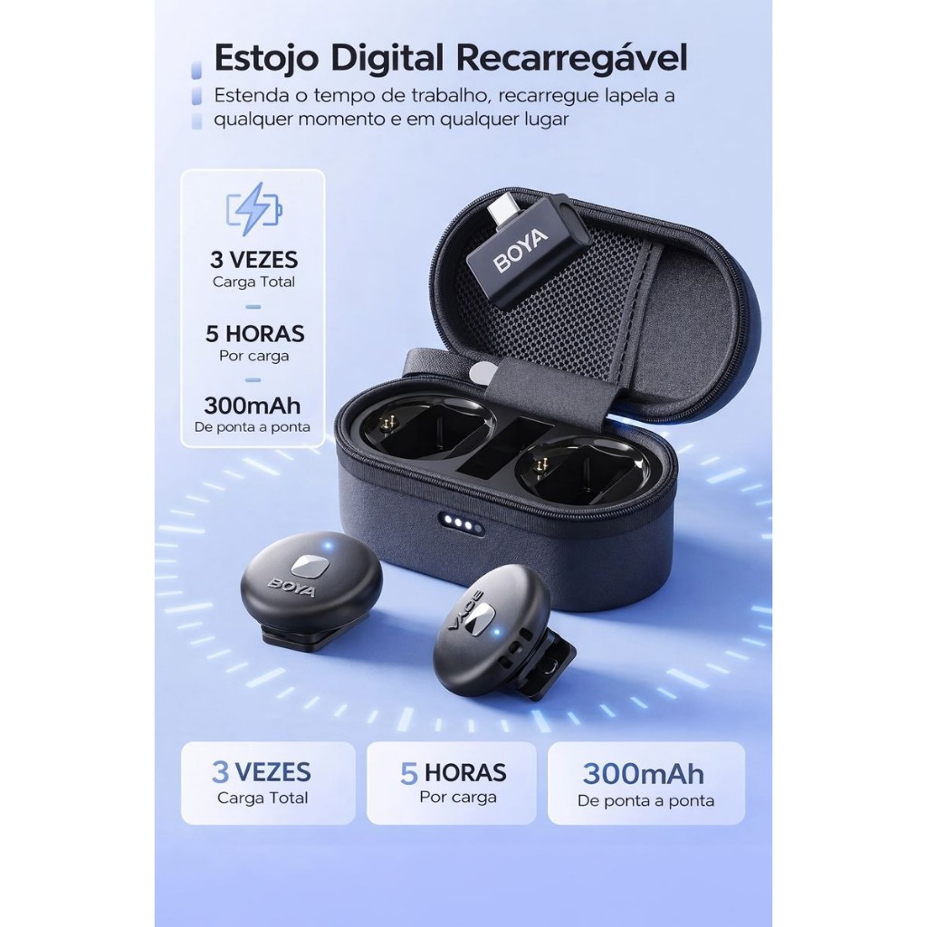 Sistema Microfone Sem Fio Boya Omic-u Usb C Lapela Preto