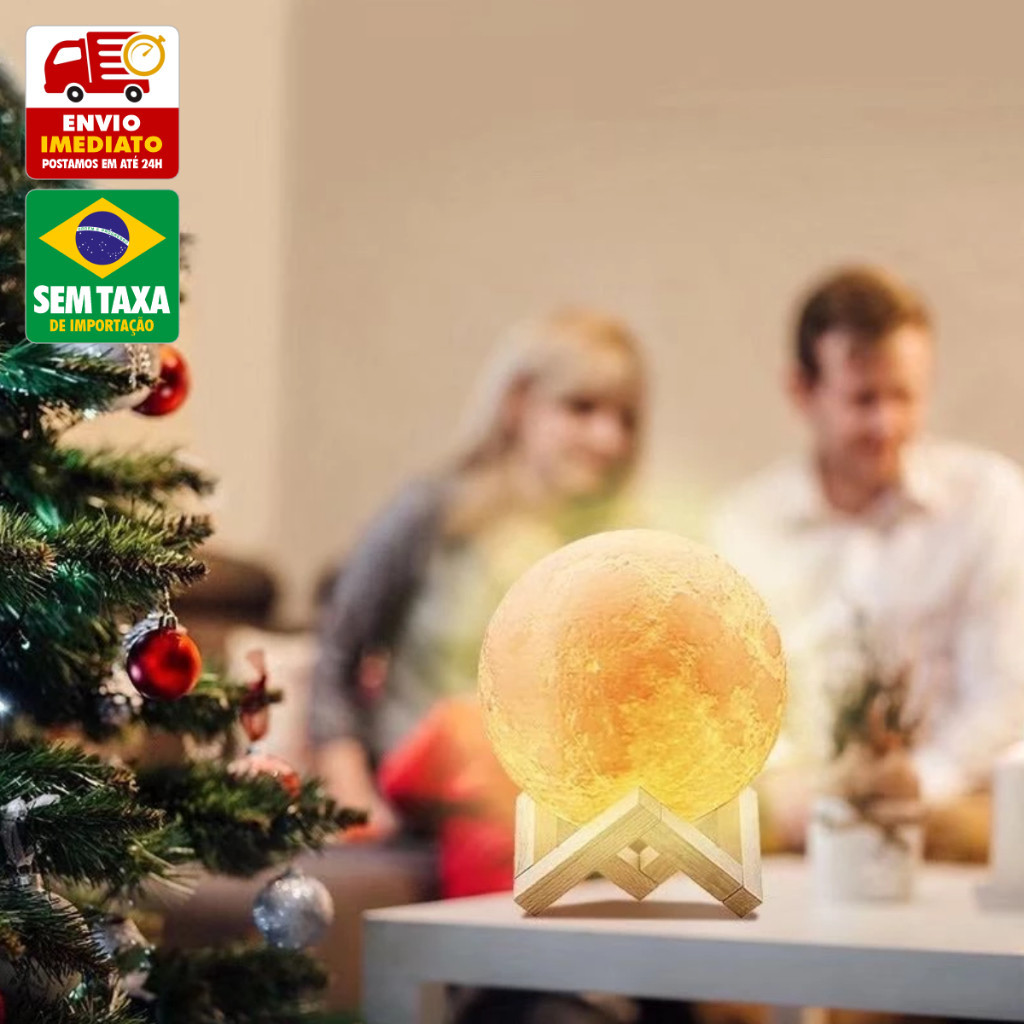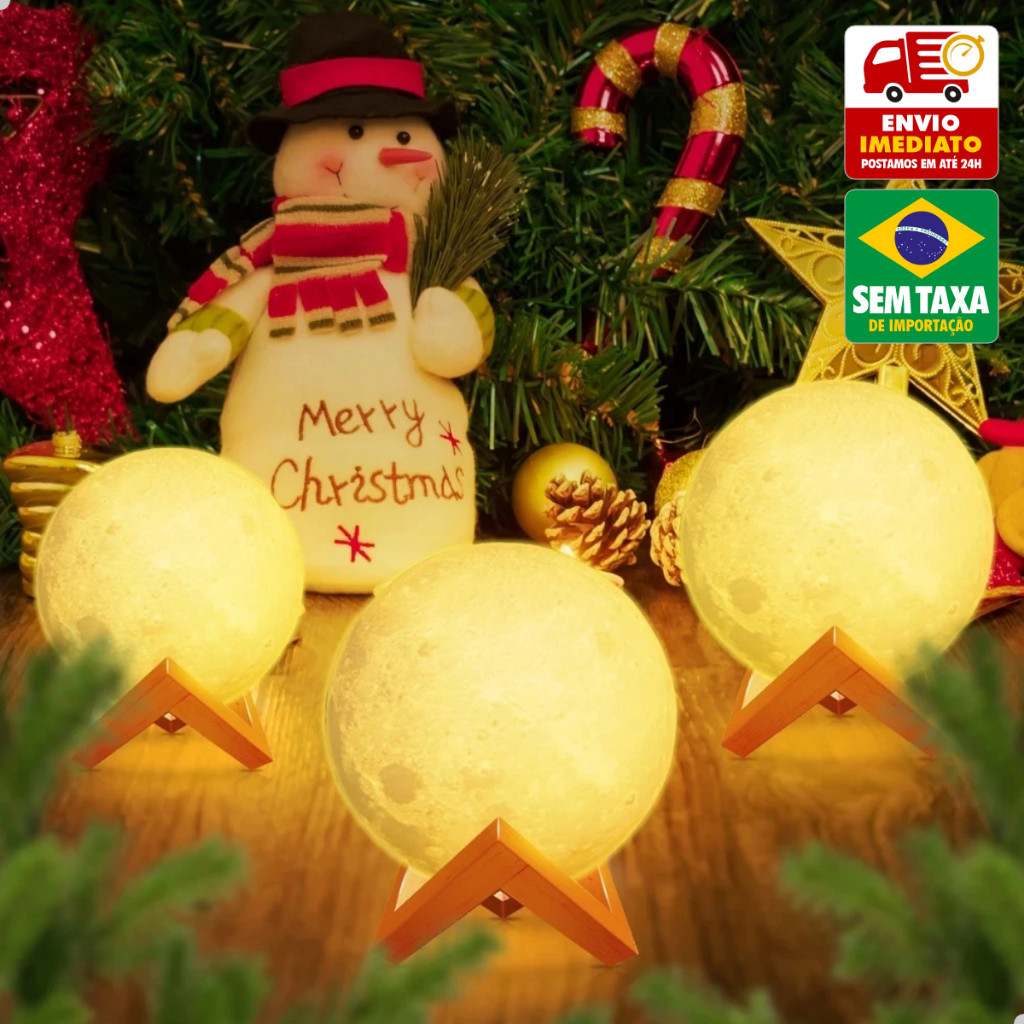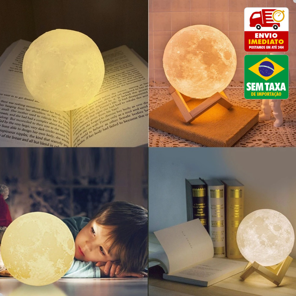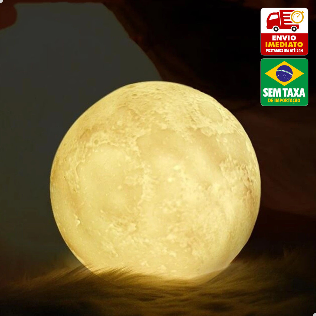 Luminária Mini Lua Cheia Abajur Decoração LED com Alto Relevo e Base para Decoração Sem Fio