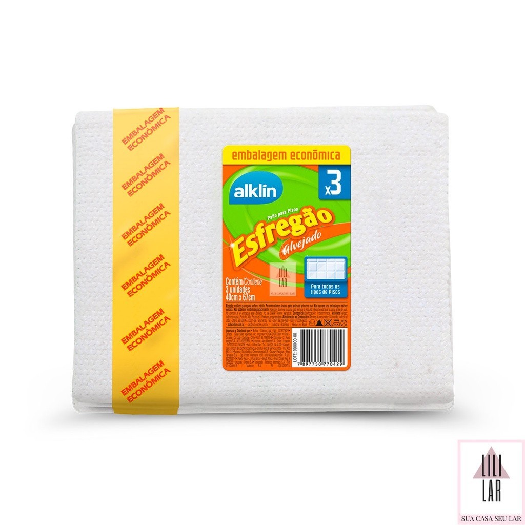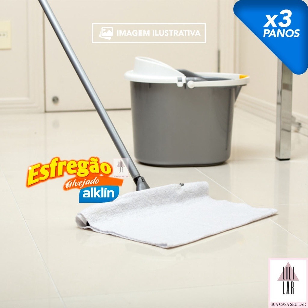 Kit 3 Panos de Chão Esfregão Alvejado Alta Absorção 40x67cm - Alklin