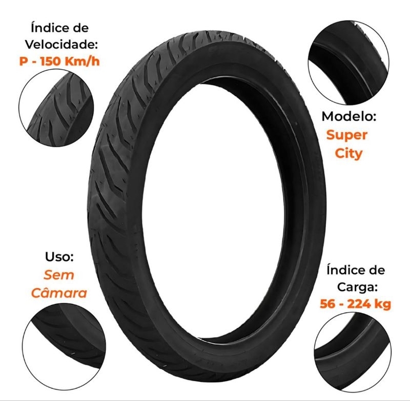PAR PNEU PIRELLI SUPER CITY SEM CÂMARA DIANTEIRO 2.75- 18 TRASEIRO 100/90-18 CG TITAN/FAN/START 150 160