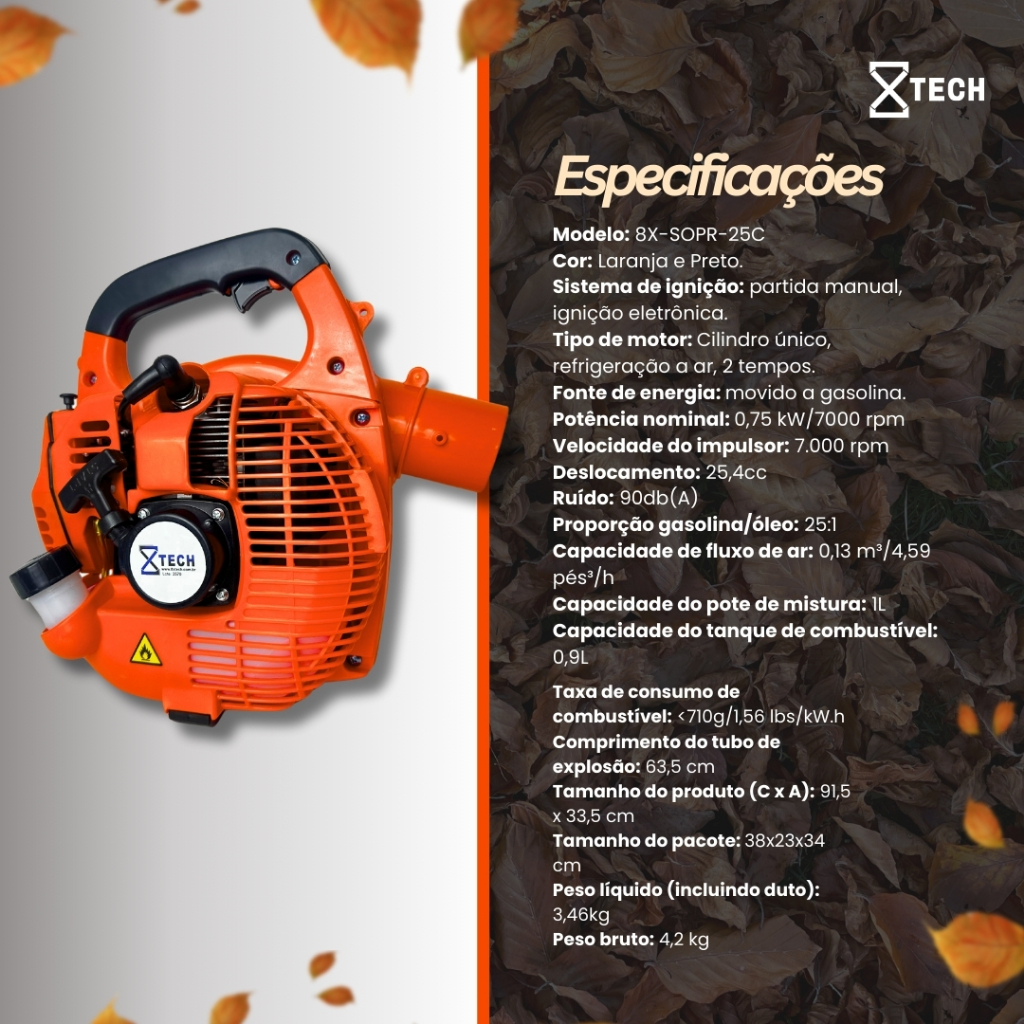 Soprador De Folhas Profissional A Gasolina 25,4cc 2 Tempos