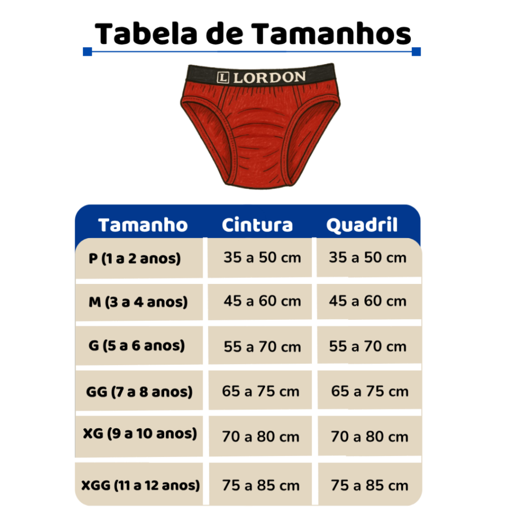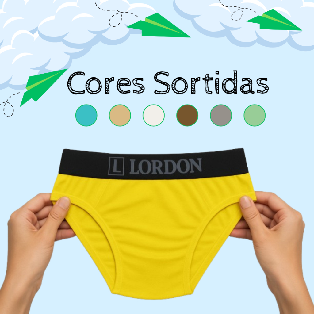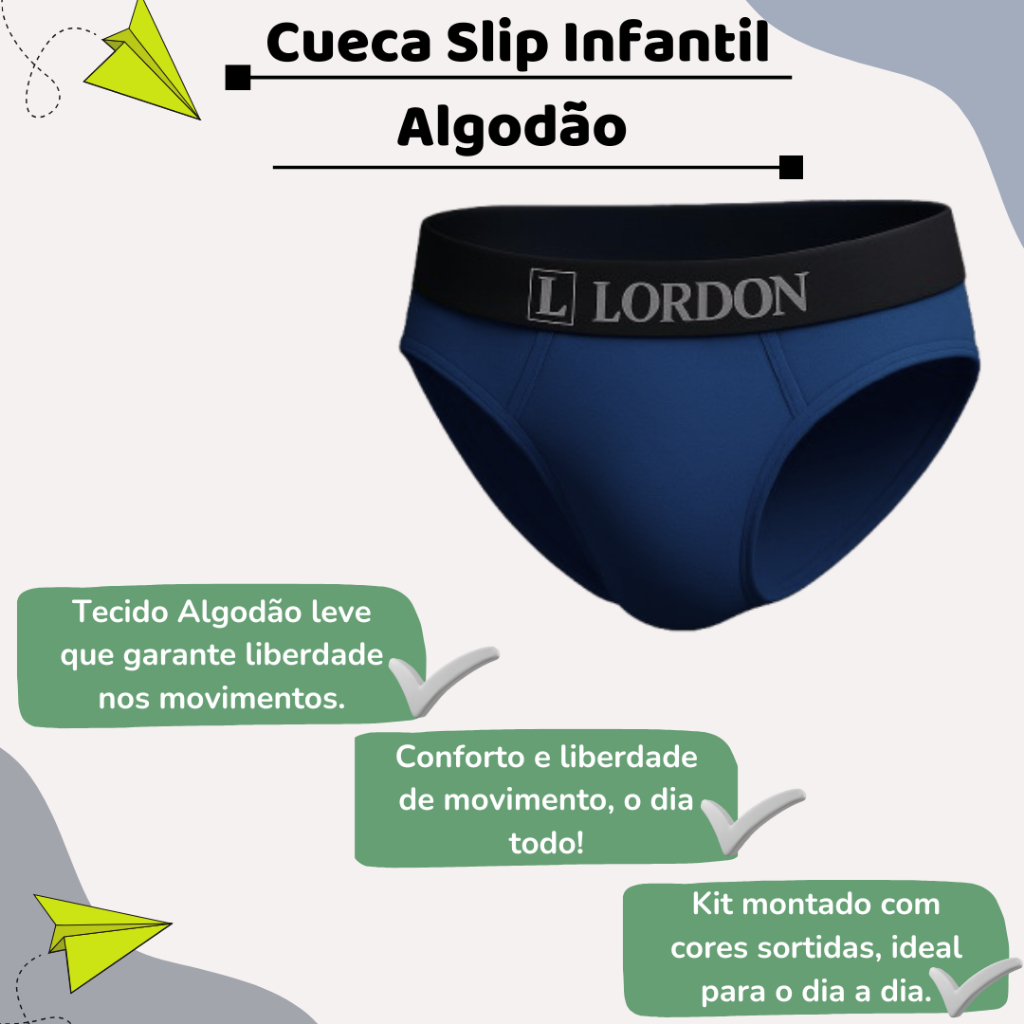 Kit 6 Cuecas Slip Infantil Juvenil 100% Algodão com Elástico Conforto Diário
