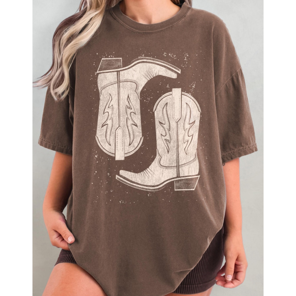 Camiseta T-shirt Unissex Algodão Boots Retro Cowgirl