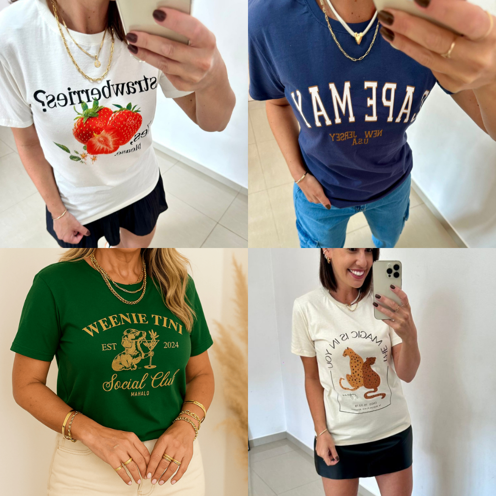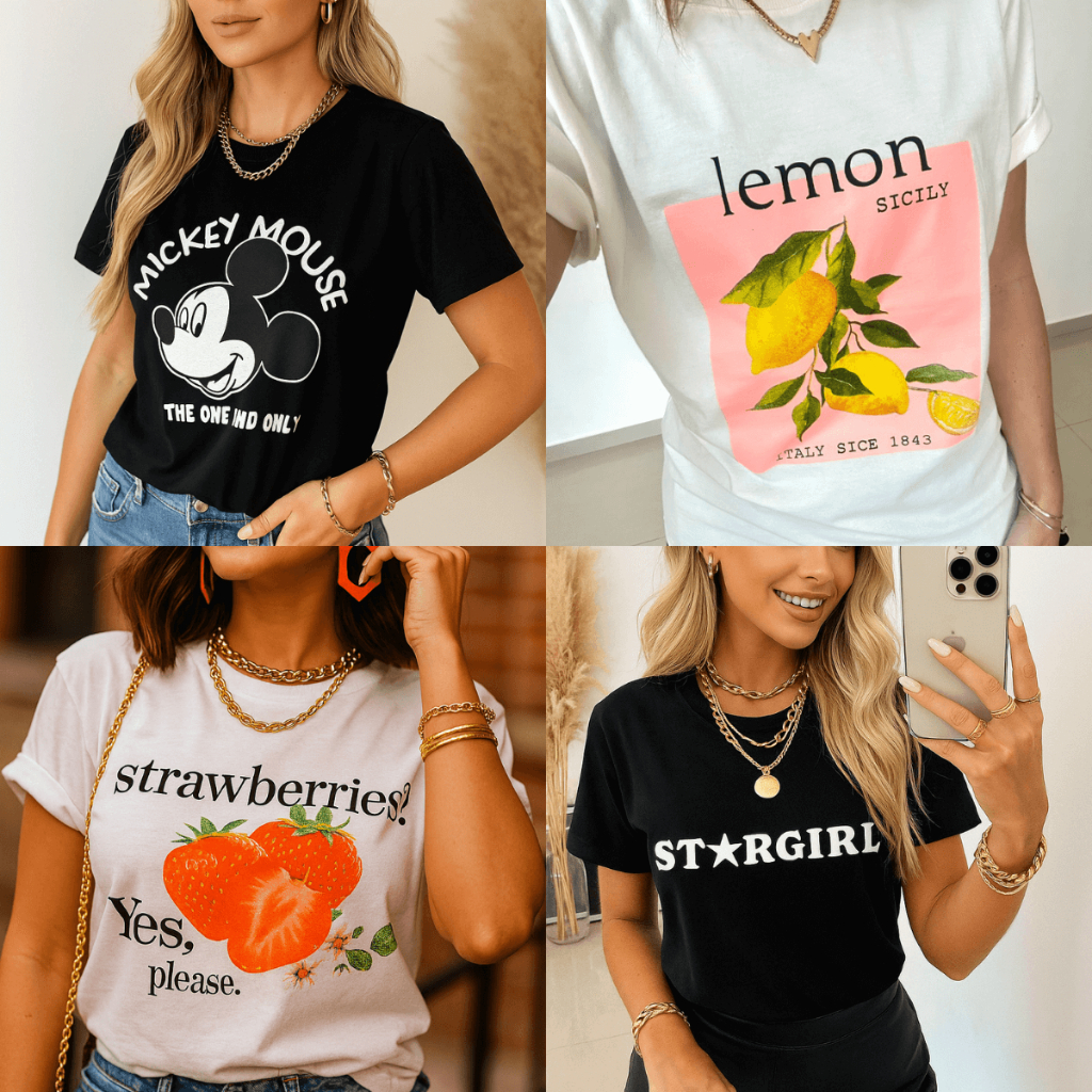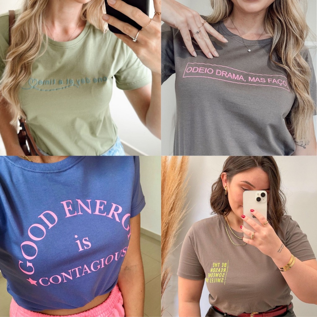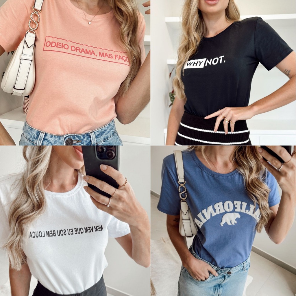 Camiseta T-shirts Feminina 100% Algodão Estampa Sortida - Premium - Fio 30.1 Penteado - Blusa Feminina