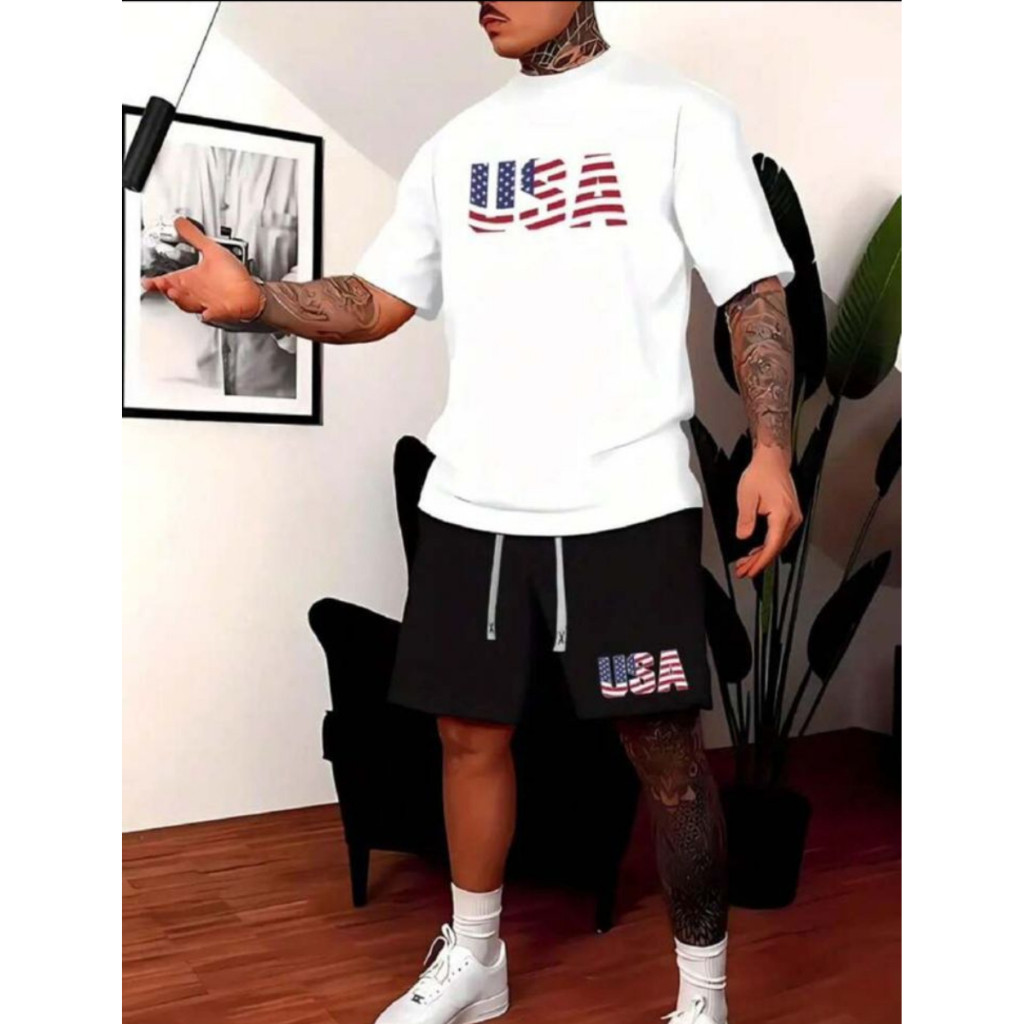 Conjunto USA NOVO Lançamento Camiseta gola Redonda Algodão + Shorts Mauricinho Tactel Masculino Confortavel top!