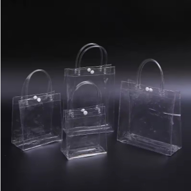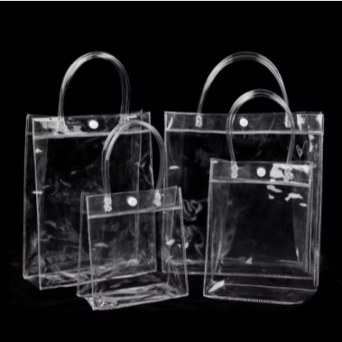 Sacola PVC Transparente com Alça e Botão - Ideal para Brindes, Festas e Casamentos. 12 unidades.