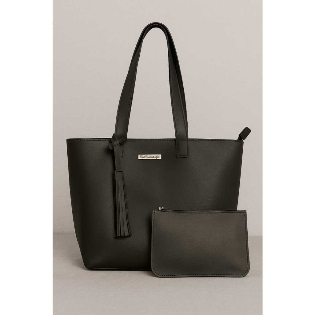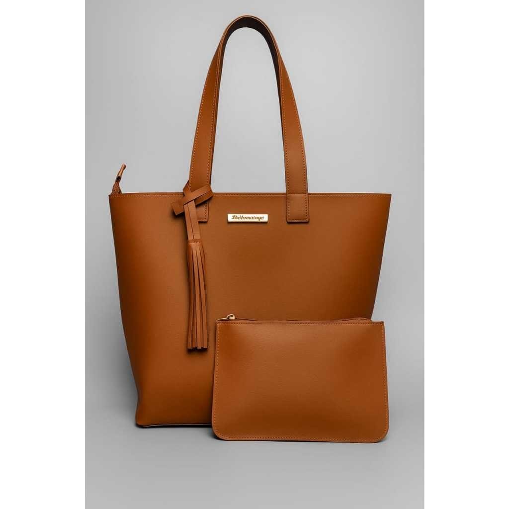 Kit Bolsa 2 peça Sacola Feminina em Sintético com Alça Reforçada e Detalhes Dourados Modernos ideal para seu dia