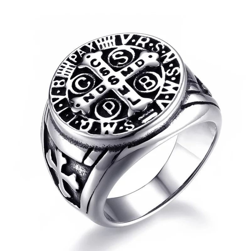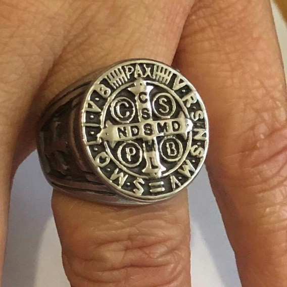 Anel São Bento Masculino Aço Inox Prata lindo envio rápido