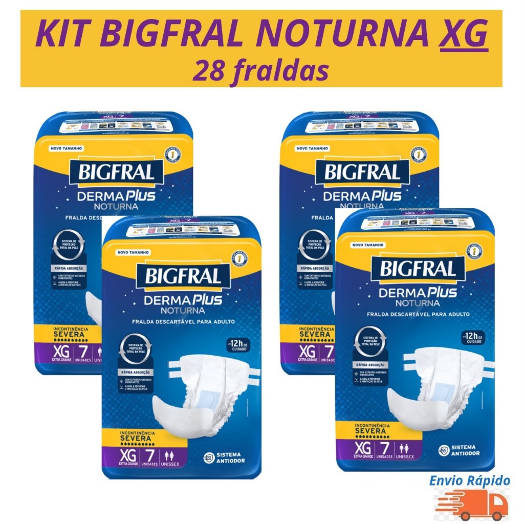 BigFral Noturna DermaPlus M, G e XG Fralda Adulta Descartavel Kit Com 4 Pacotes
