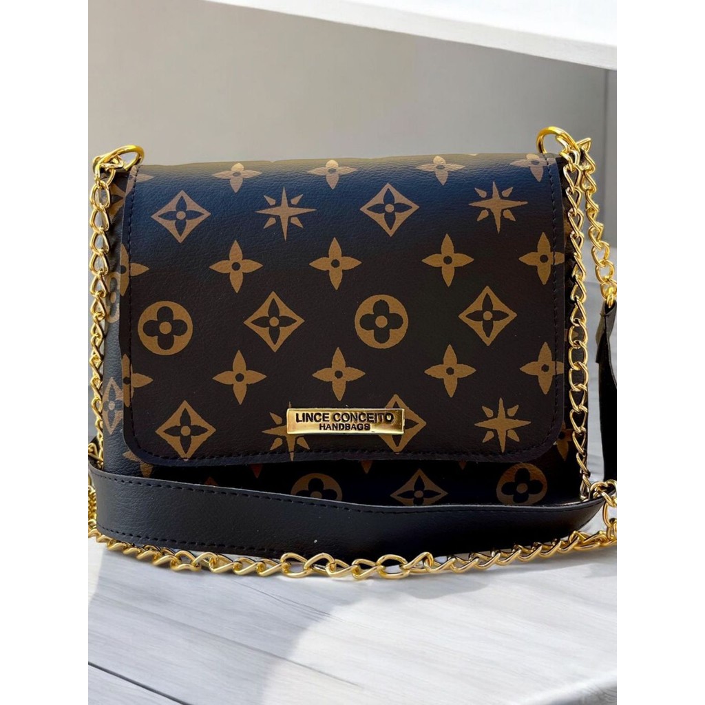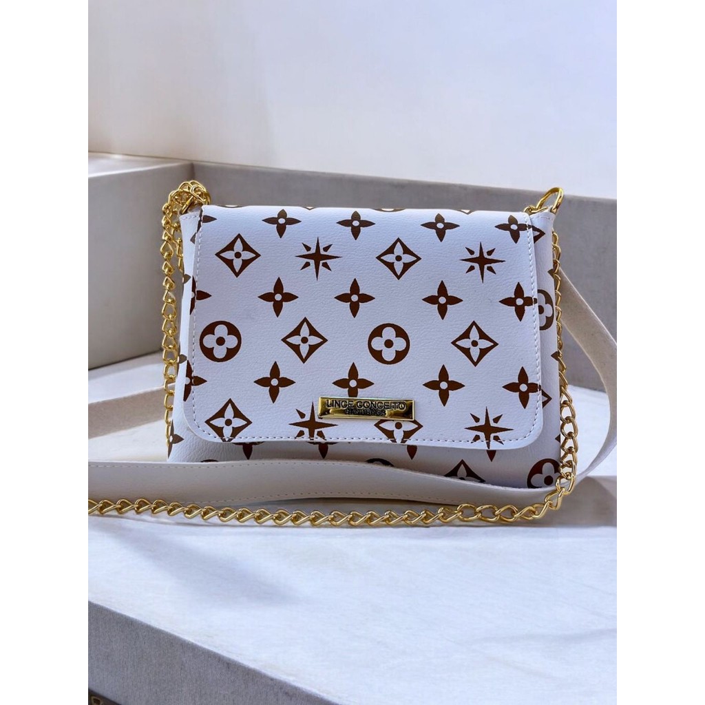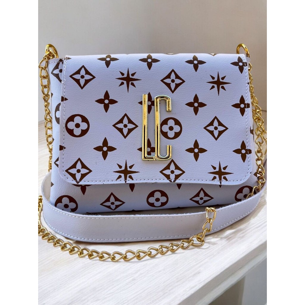 Bolsa Lc Basica Transversal Feminina Media Estampada Flor Corrente Lateral e Ombro Tira Colo Bolsa Festinha