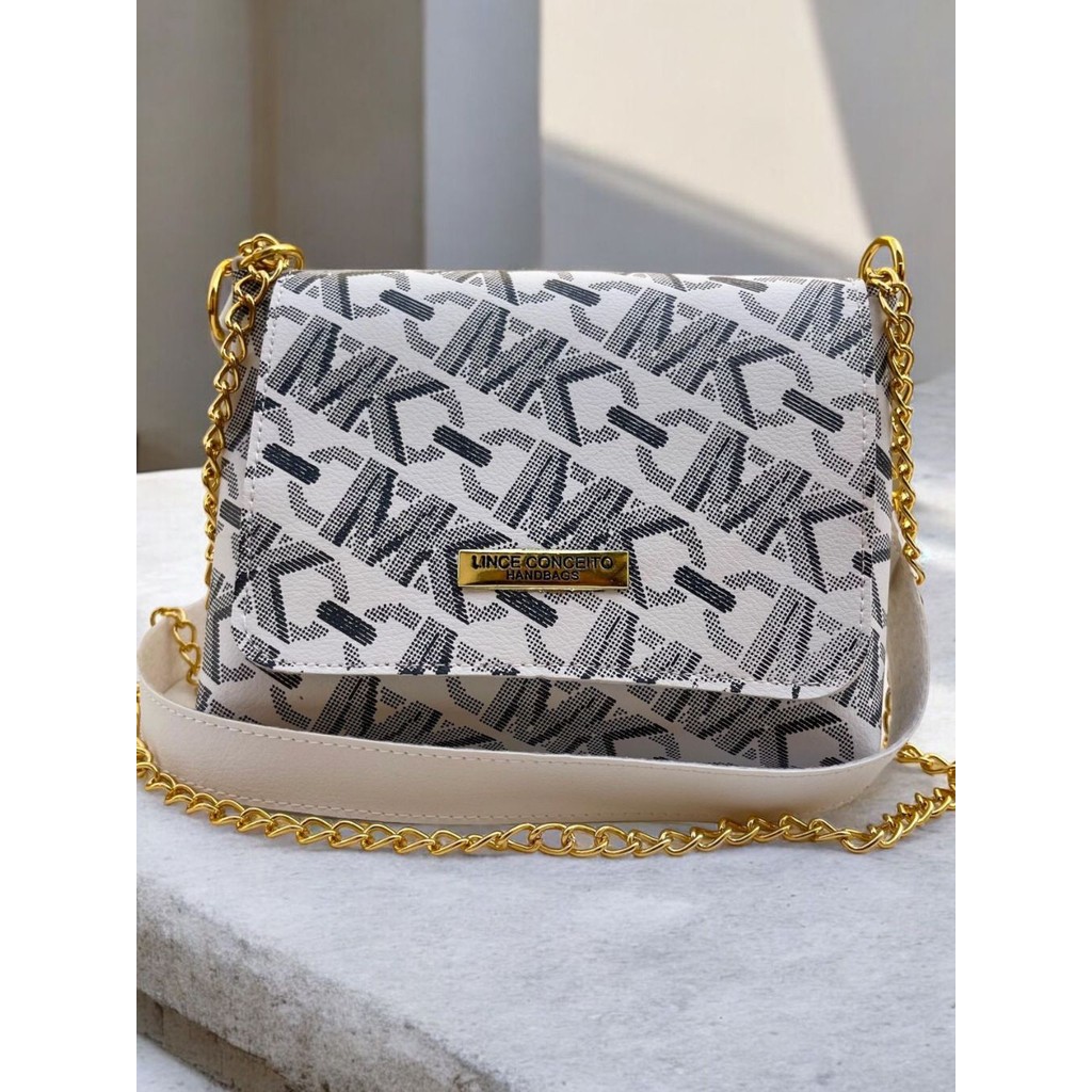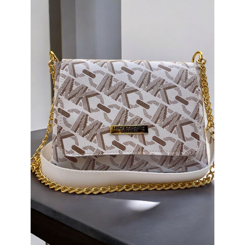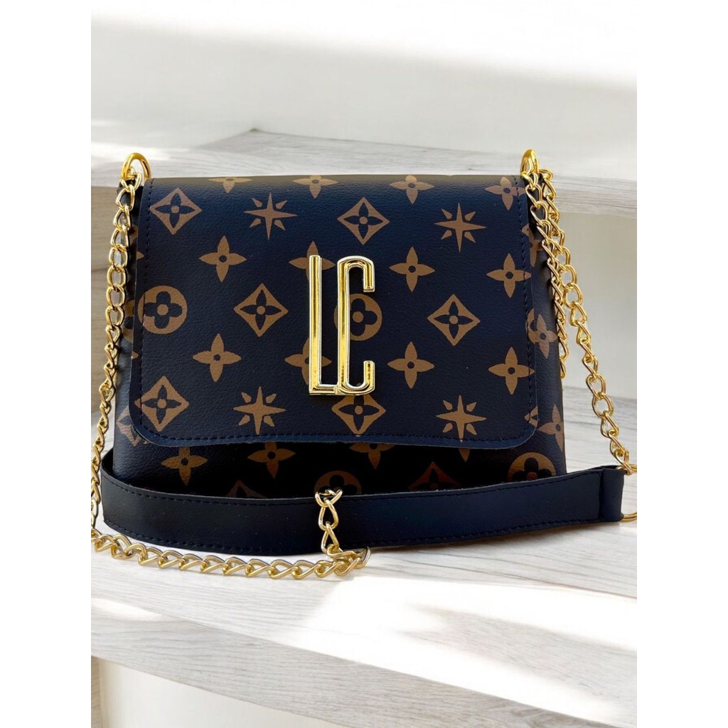 Bolsa Lc Basica Transversal Feminina Media Estampada Flor Corrente Lateral e Ombro Tira Colo Bolsa Festinha