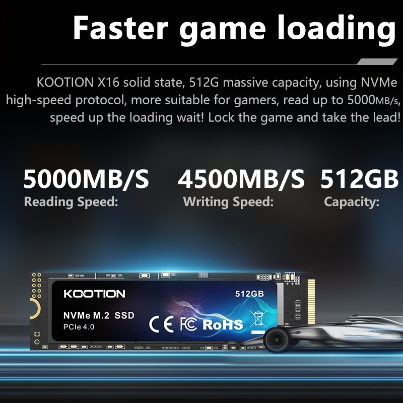 Kootion X16 M.2 NVMe PCIe 4.0 5000MB/s, 512GB/1TB/2TB, TLC 3D NAND, Garantia 5 Anos, PS5