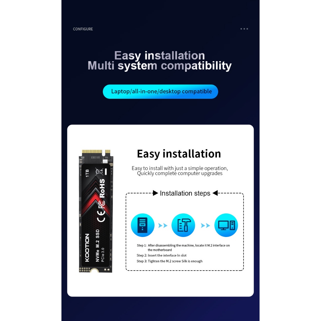 Kootion X15Lite M.2 NVMe 2280 PCIE3.0 SSD - 3D NAND, 256GB/512GB/1TB, PC/Notebook/Games