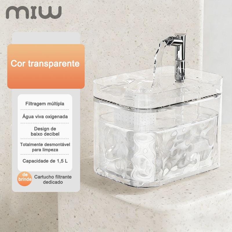 MIW Bebedouro Automático para Gatos e Cães: Circulação de Água com Filtro de 1,5 Litro e Base Segura