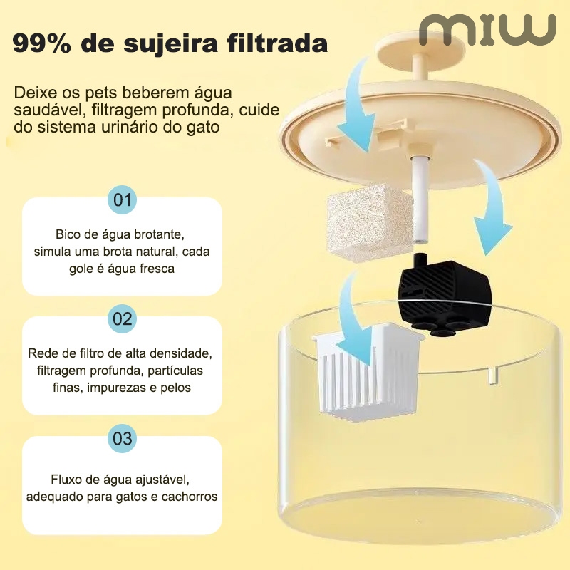 MIW Fontes Para Animais De Estimação com Filtro De Circulação Automática, Fonte De Água Elétrica para Gatos Bebedores