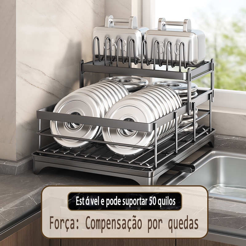 haosin Escorredor de Louças 2 Andares Aço inox Organizador de Cozinha com Porta Talher e Bandeja de Escoamento
