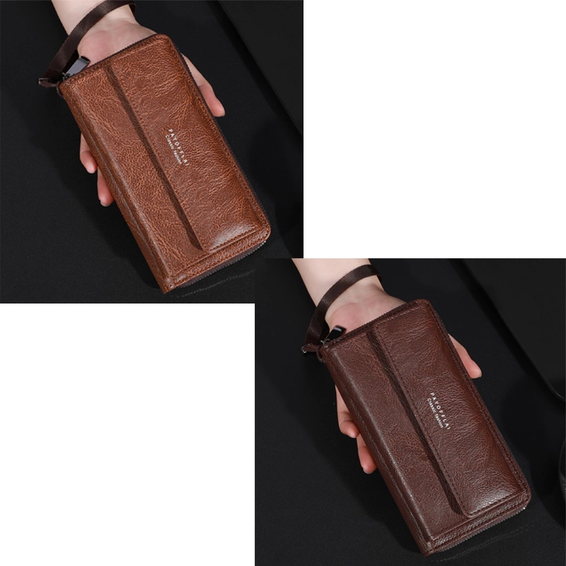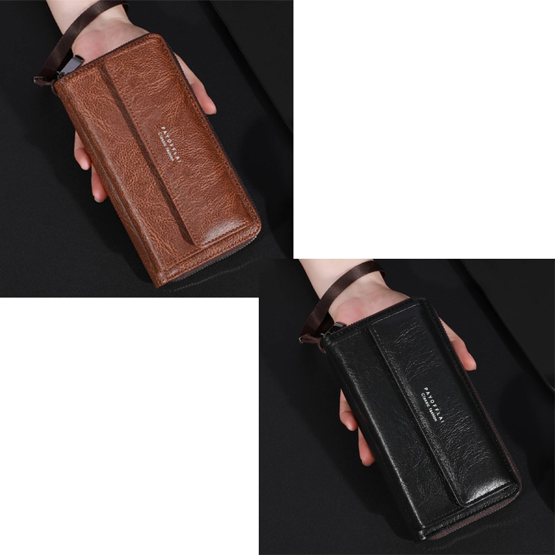 Carteira Masculina Com Zíper Longo – Suporte Para Telefone Em Couro PU De Grande Capacidade Compartimentos Vários Cartõe