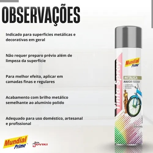 Tinta Spray Prata Metalica 400ml/240g Mundial Prime