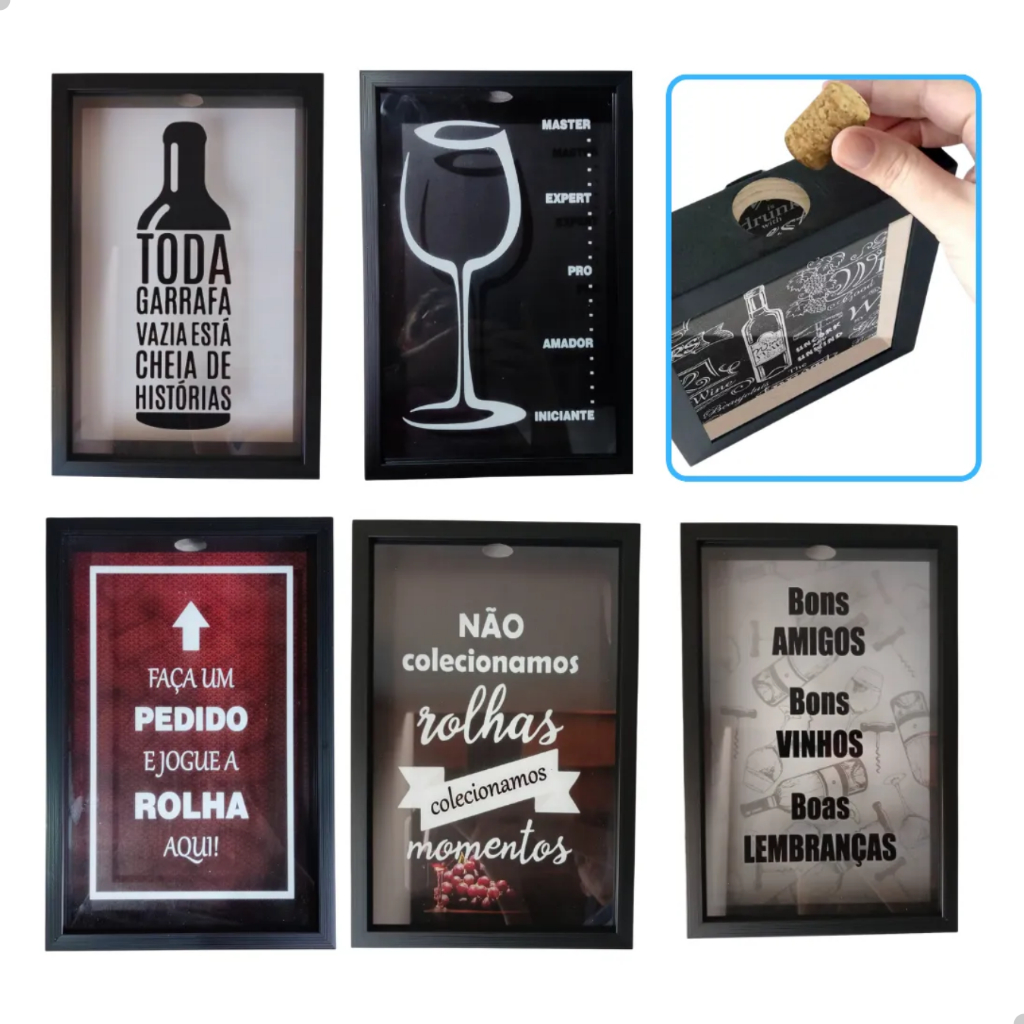 Quadro Porta Rolhas Vinho 20x25cm Plástico Acrílico Transparente Decoração Criativa Amigold