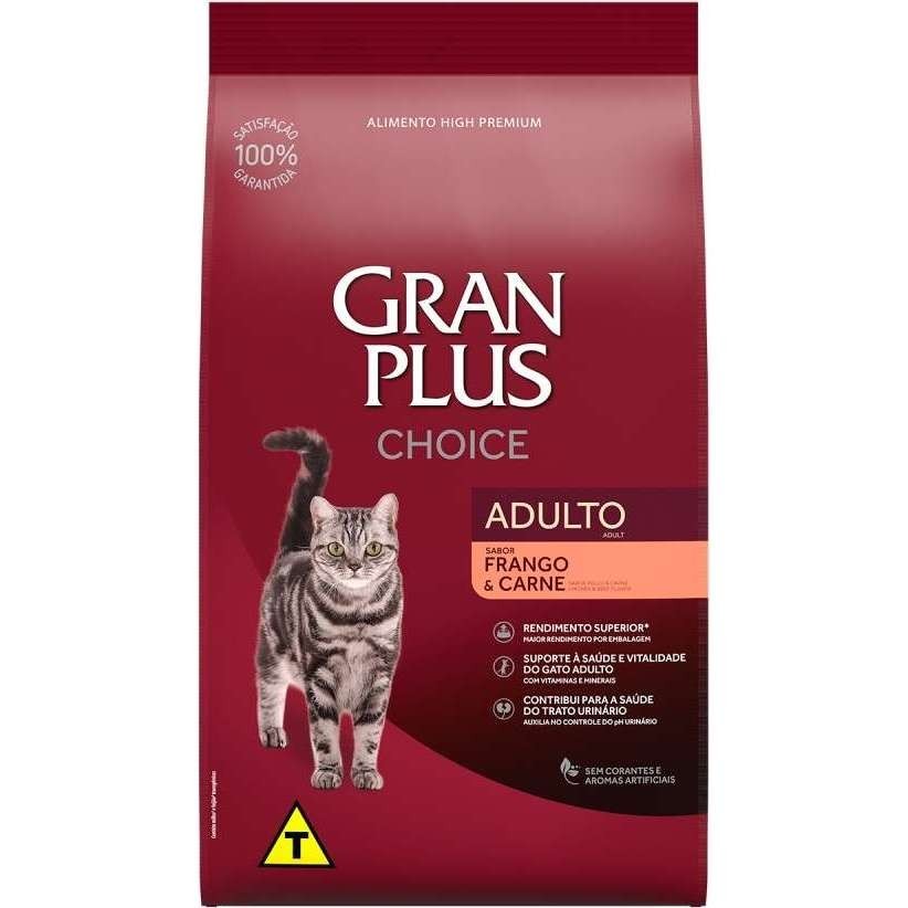 Ração para Gatos Gran Plus Choice 10,1kg - Sabores Carne e Frango, Nutrição Completa