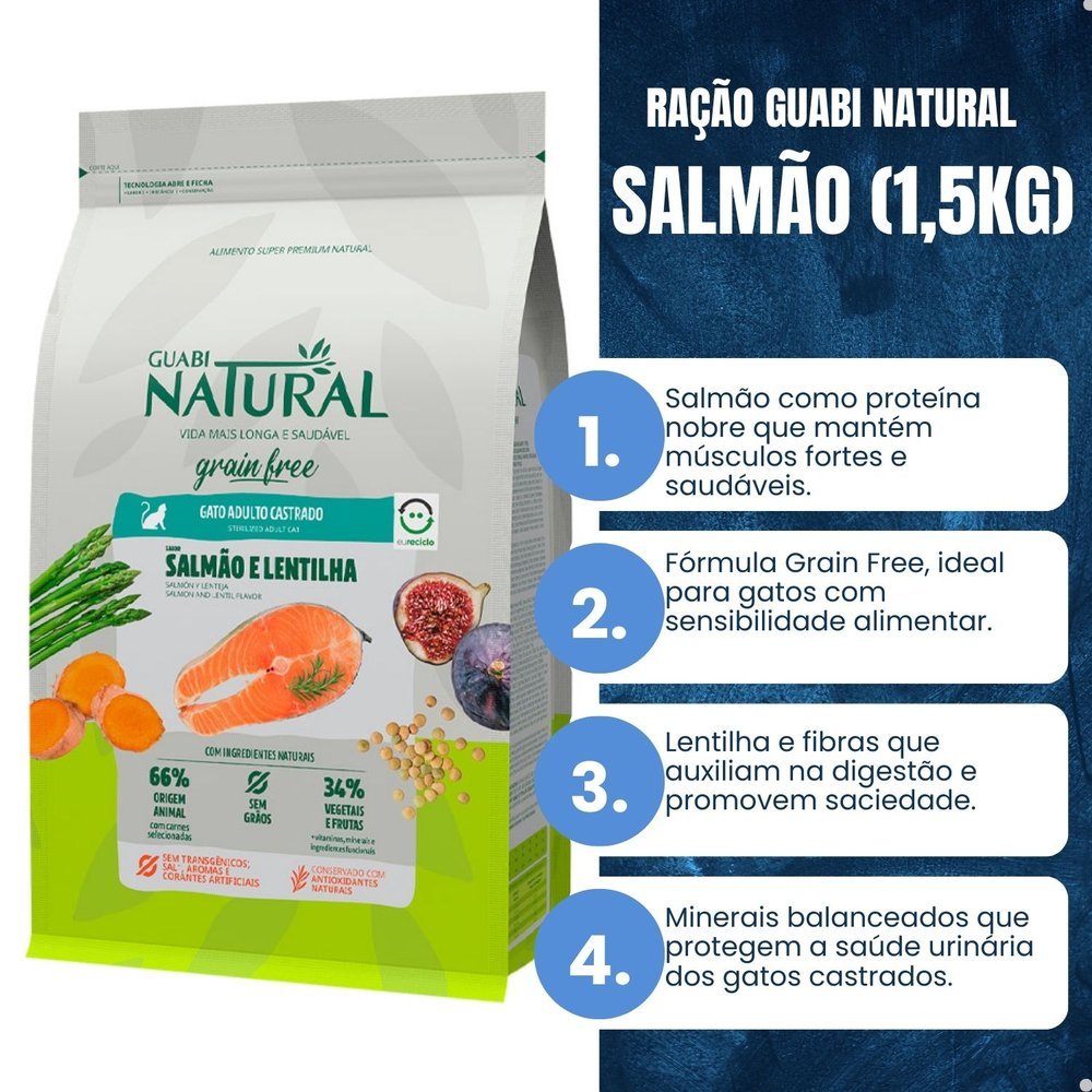 Ração Seca Guabi Natural Grain Free Salmão e Lentilha para Gatos Castrados 7,5kg
