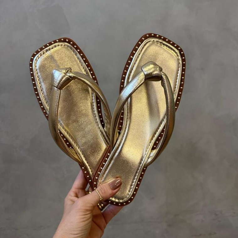 Sandália Rasteirinha Chinelo Rasteira Feminina Confortável Ortopedico Nó Tiras Acolchoado RN2