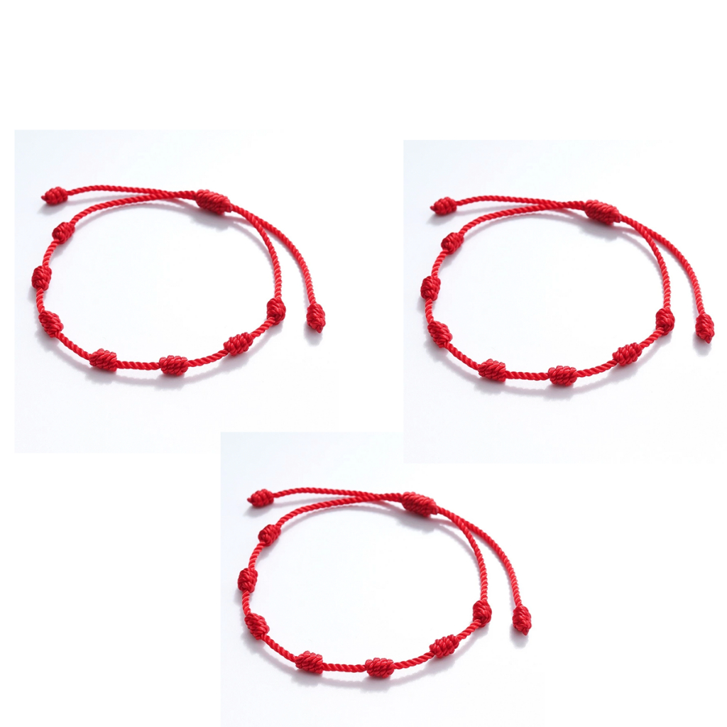 Pulseira 7 Nós Kabbalah Vermelha Contra Mal Olhado Inveja Adulto Regulável