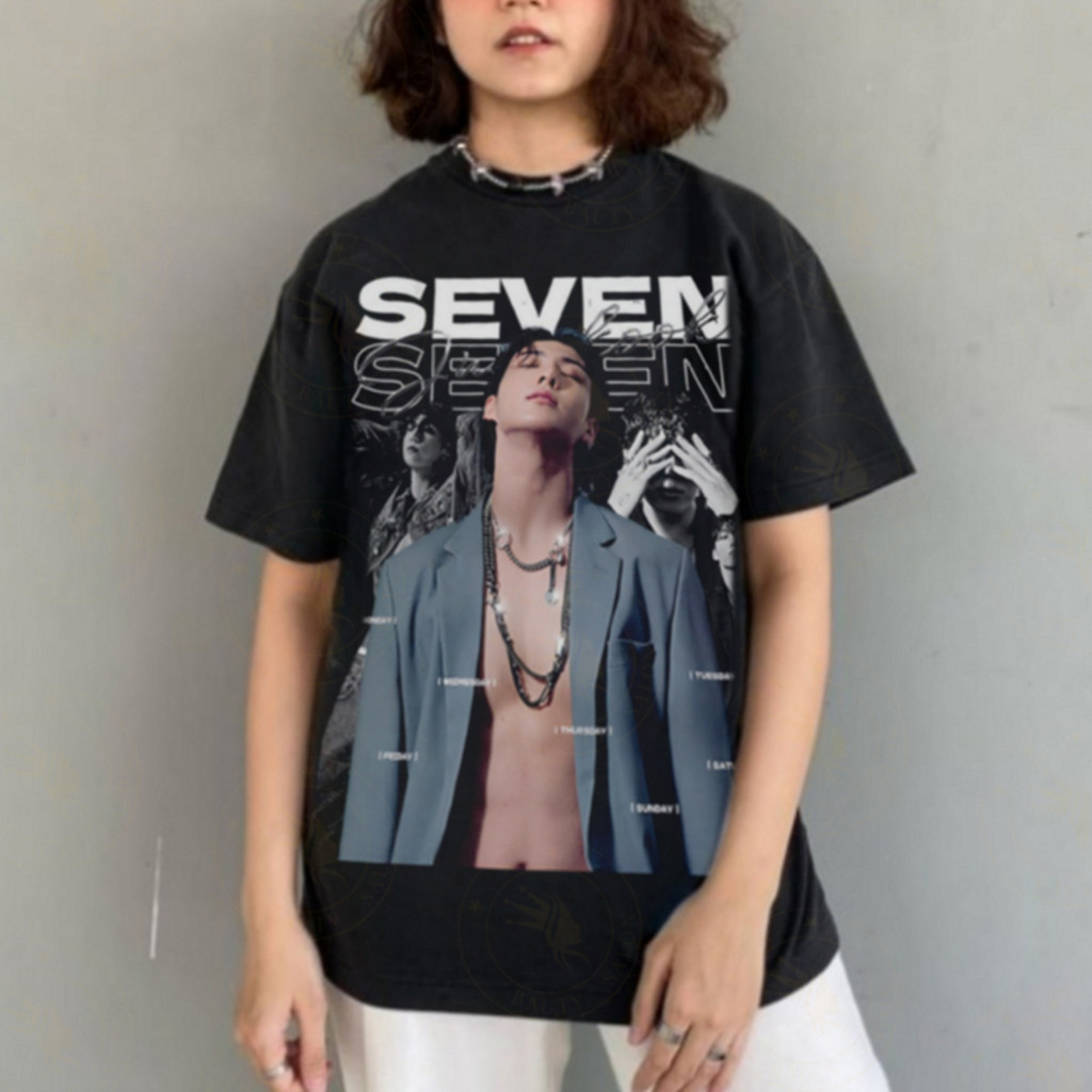 Camiseta Algodão BTS Jeon Jung-kook Seven Kpop Streetwear Masculina e Feminina Preta