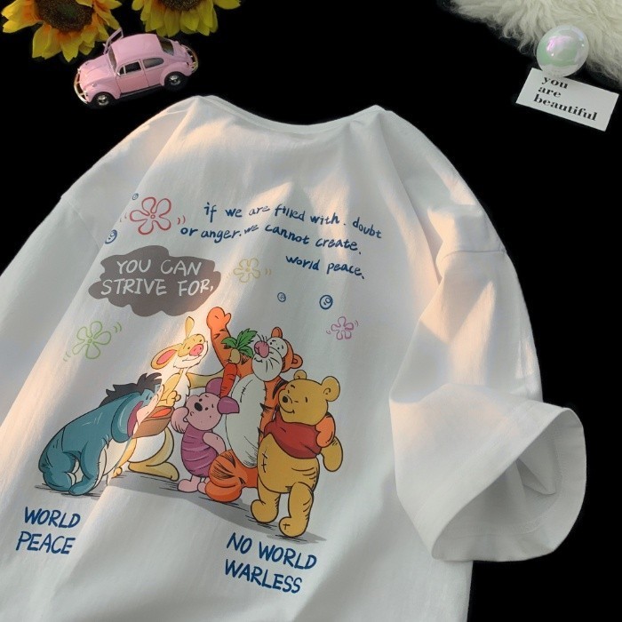 Cartoon Camiseta De Manga Curta Feminina Estampada Casual Ursinho Pooh 100%ALGODÃO ENVIO IMEDIATO!