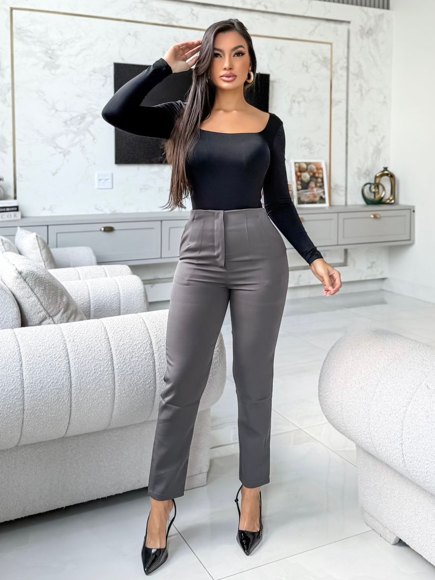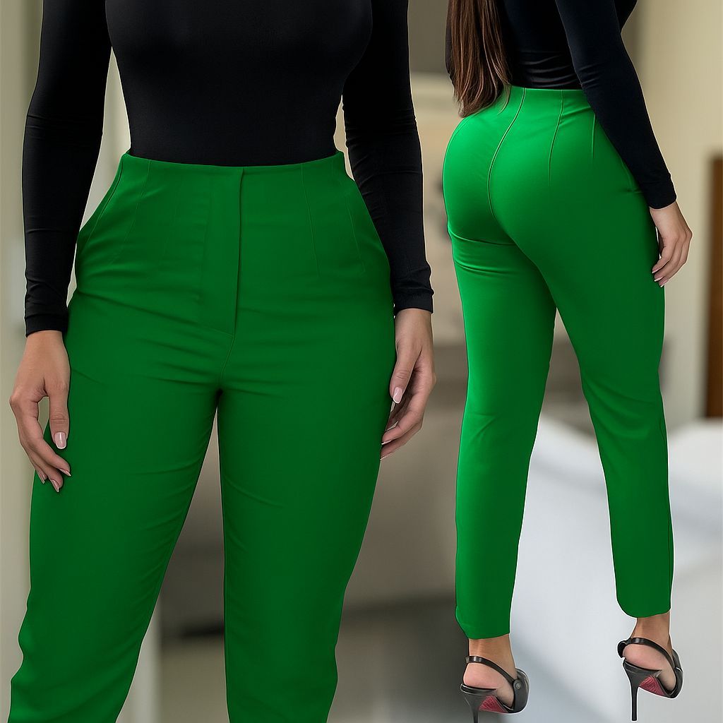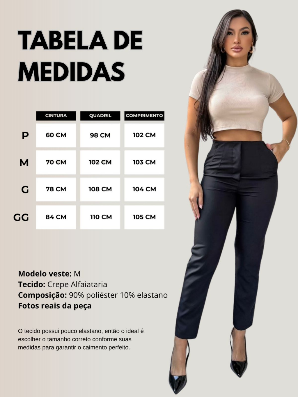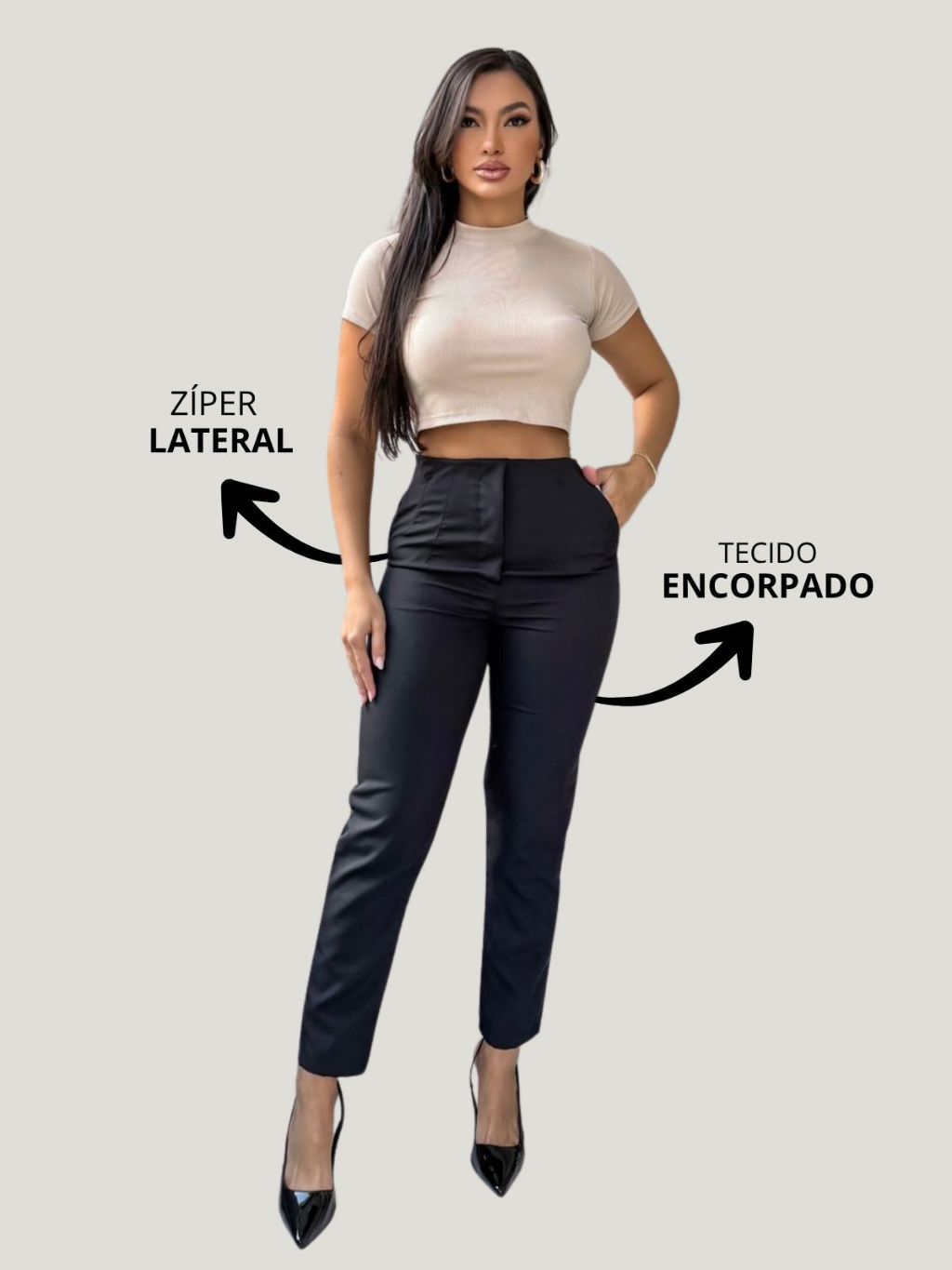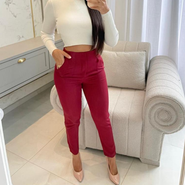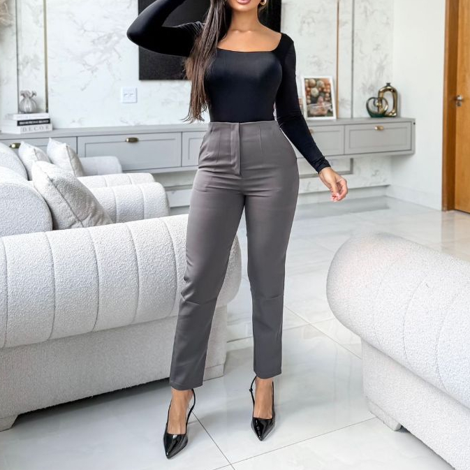 Calça Feminina Alfaiataria Social Cintura Alta Com Zíper Lateral Casual Elegante