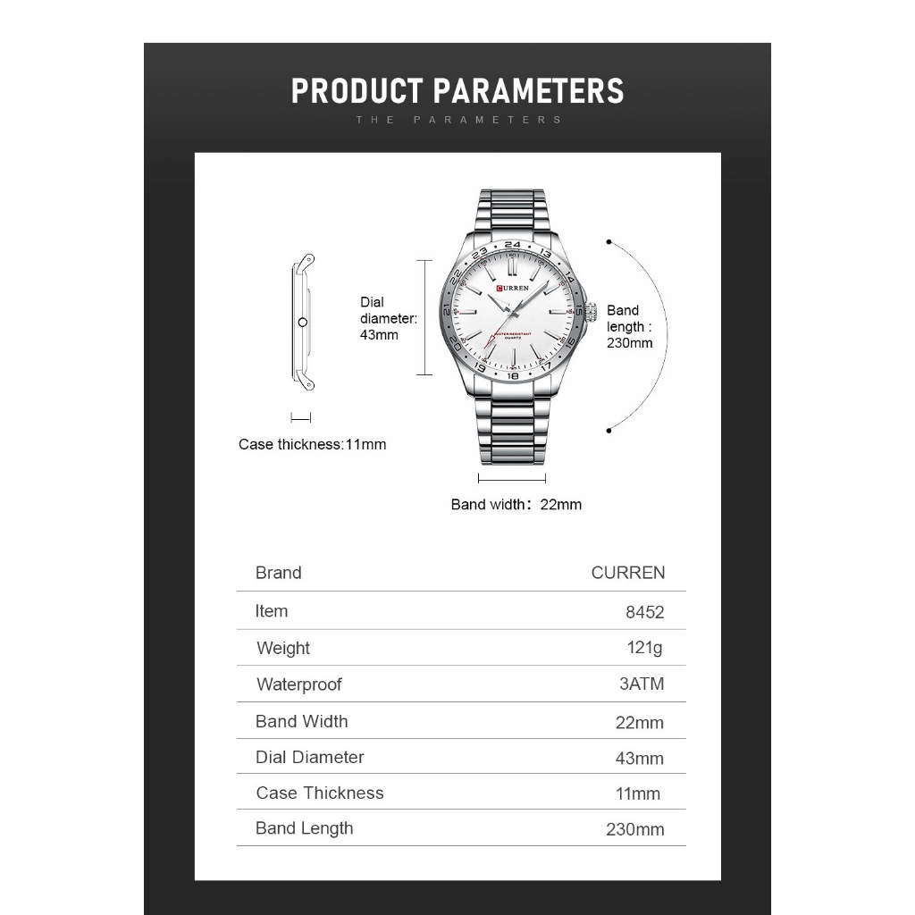 CURREN 8452 Relógio De Quartzo Masculino Para Negócios , Lazer , Moda , Simplicidade , Tira De Aço À Prova D'água