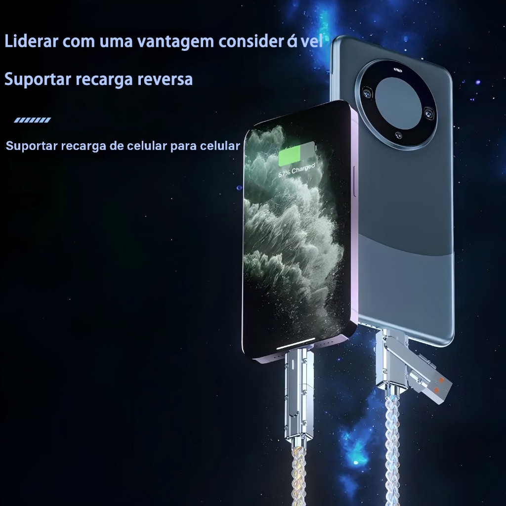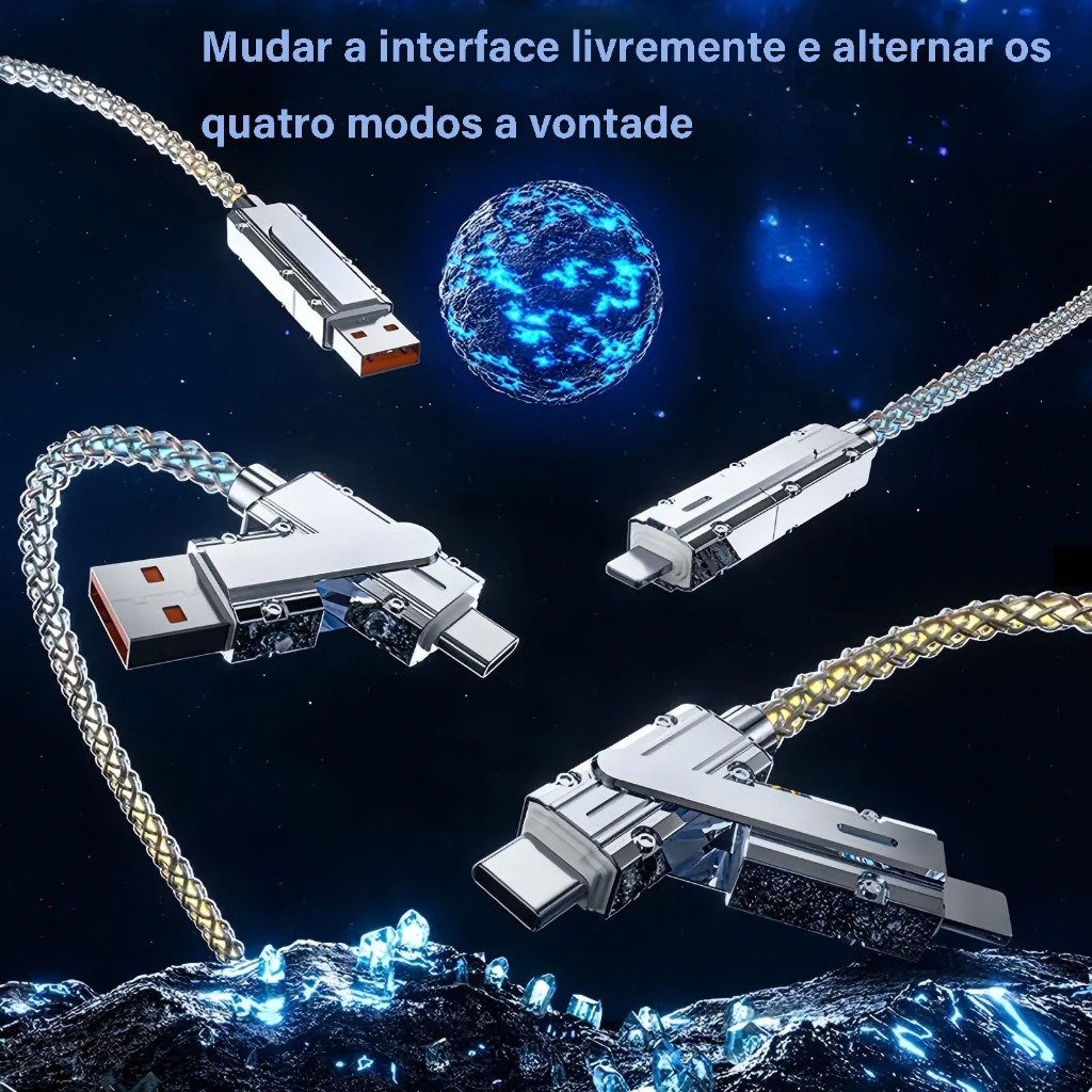Cabo de carregamento rápido 4 em 1 para Android e iphone Streamer colorido com USB A Tipo C e Lightning