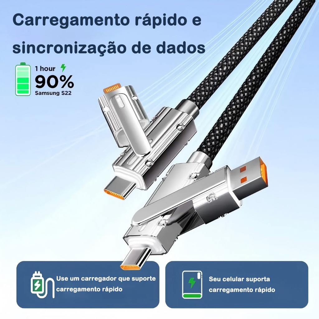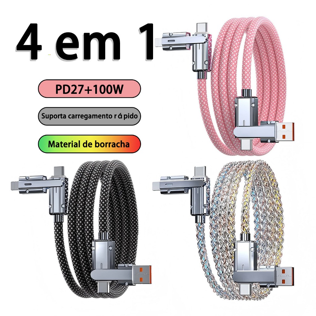 Cabo De Carregamento ultra-Rápido 4 Em 1 De 100 W , Adequado Para Todos Os Telefones Celulares Com Conectores USB Tipo C