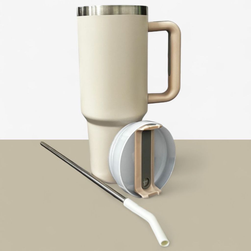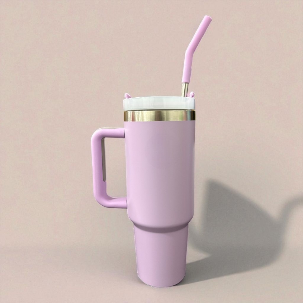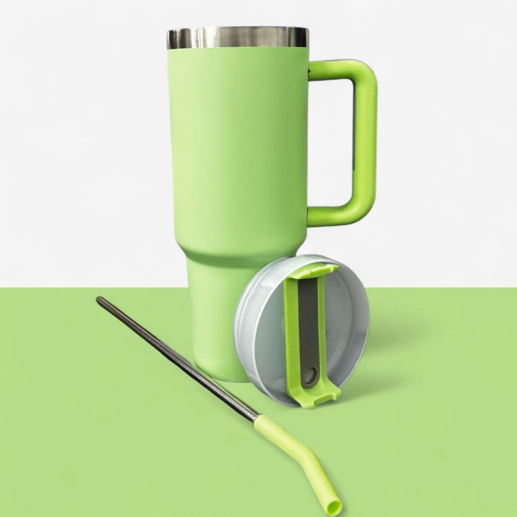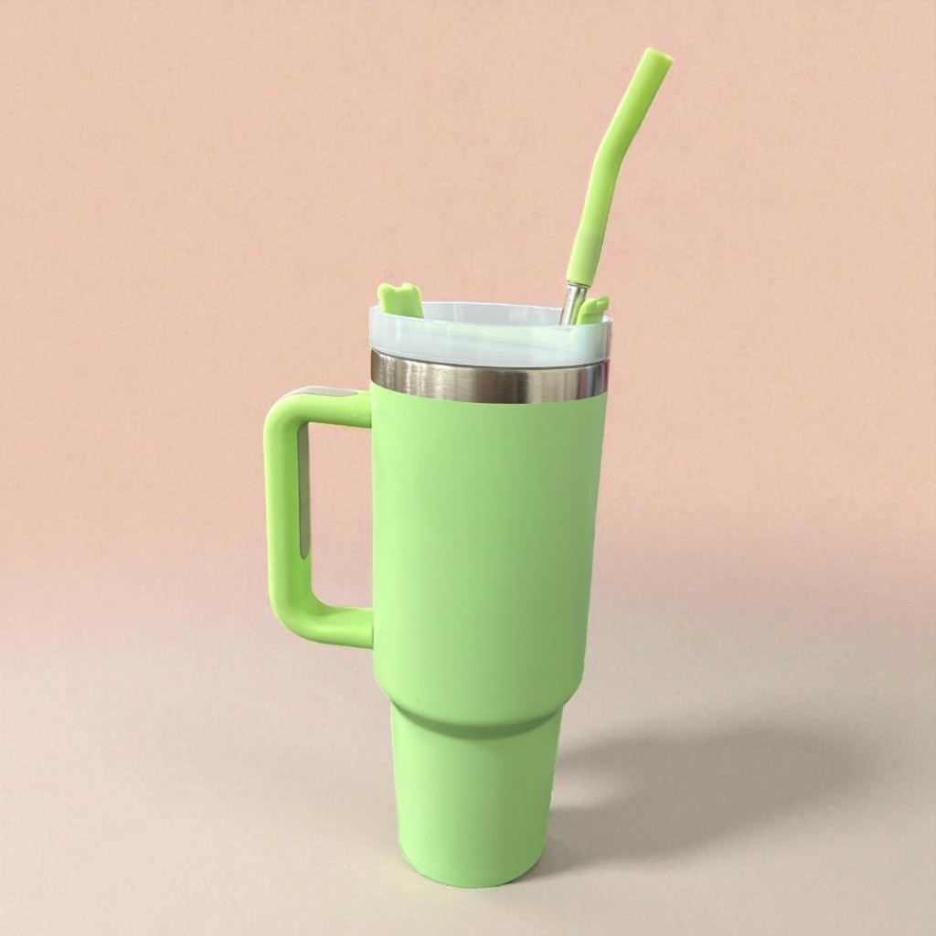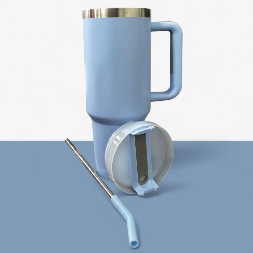 Copo Térmico Inox Portátil 1200ml/1.2L Canudo Inox com Alça nas Cores Pasteis Logo ST Bebida Gelada