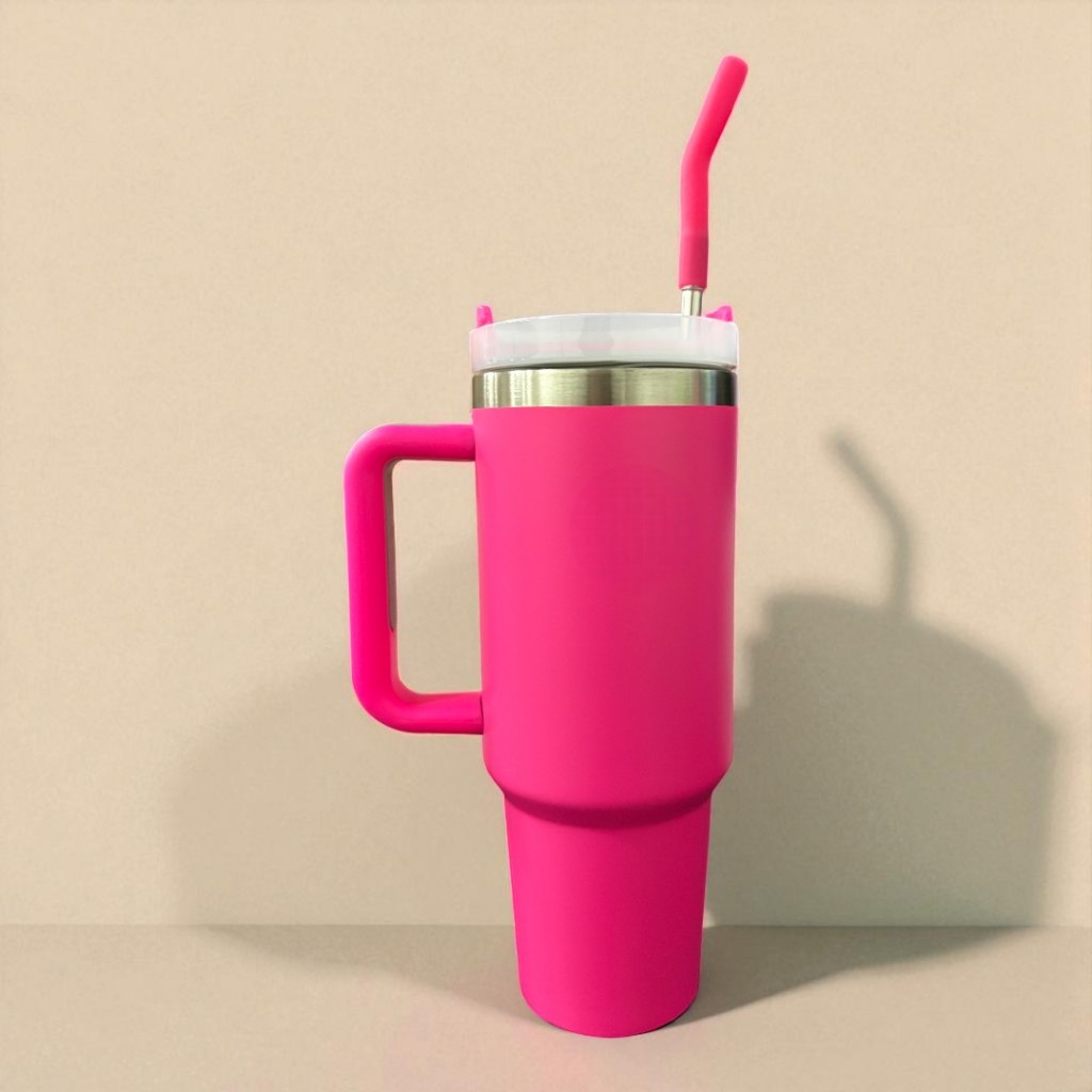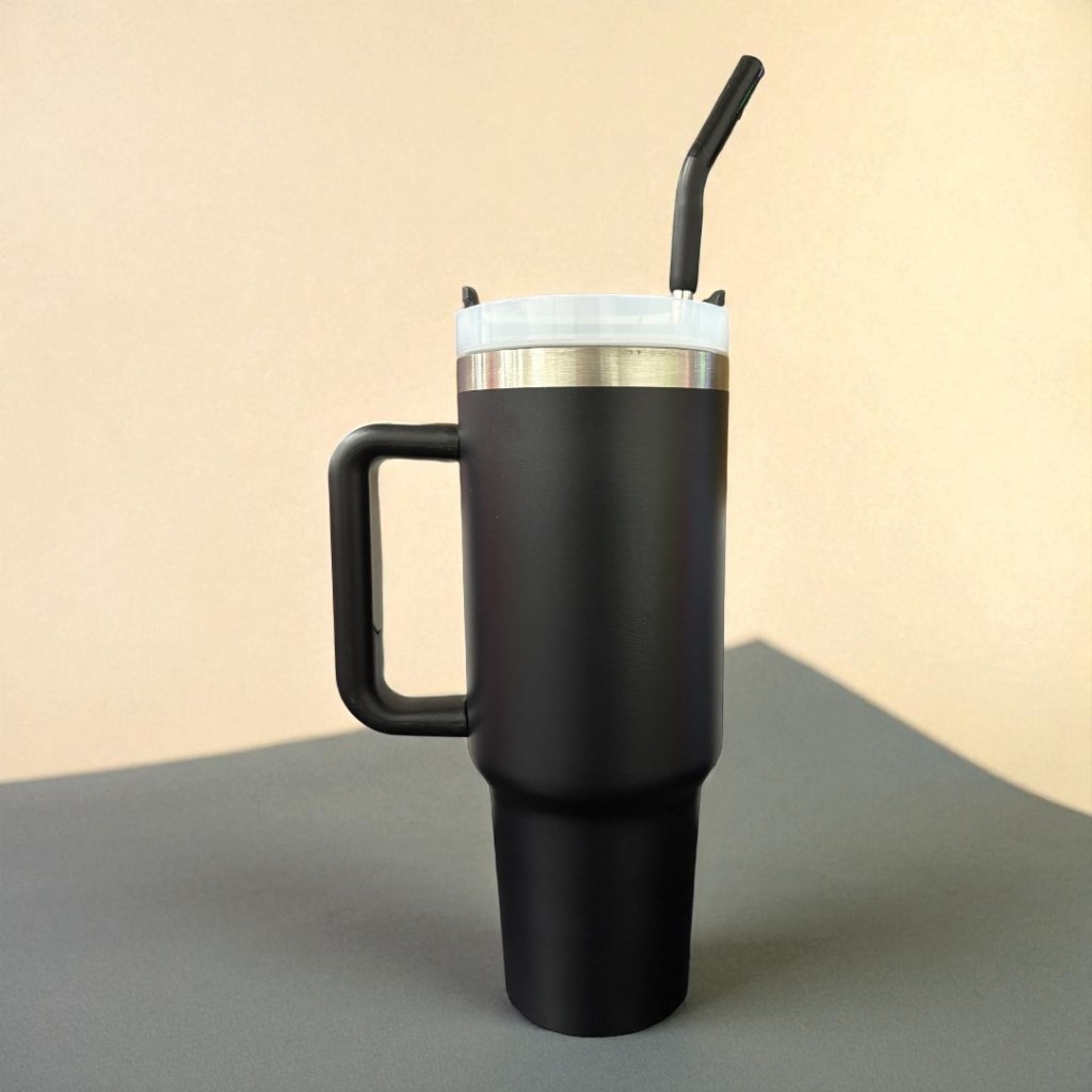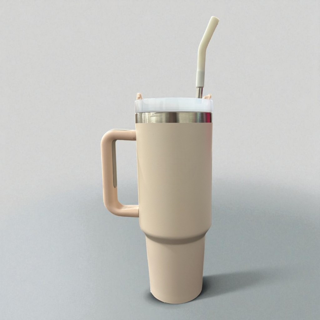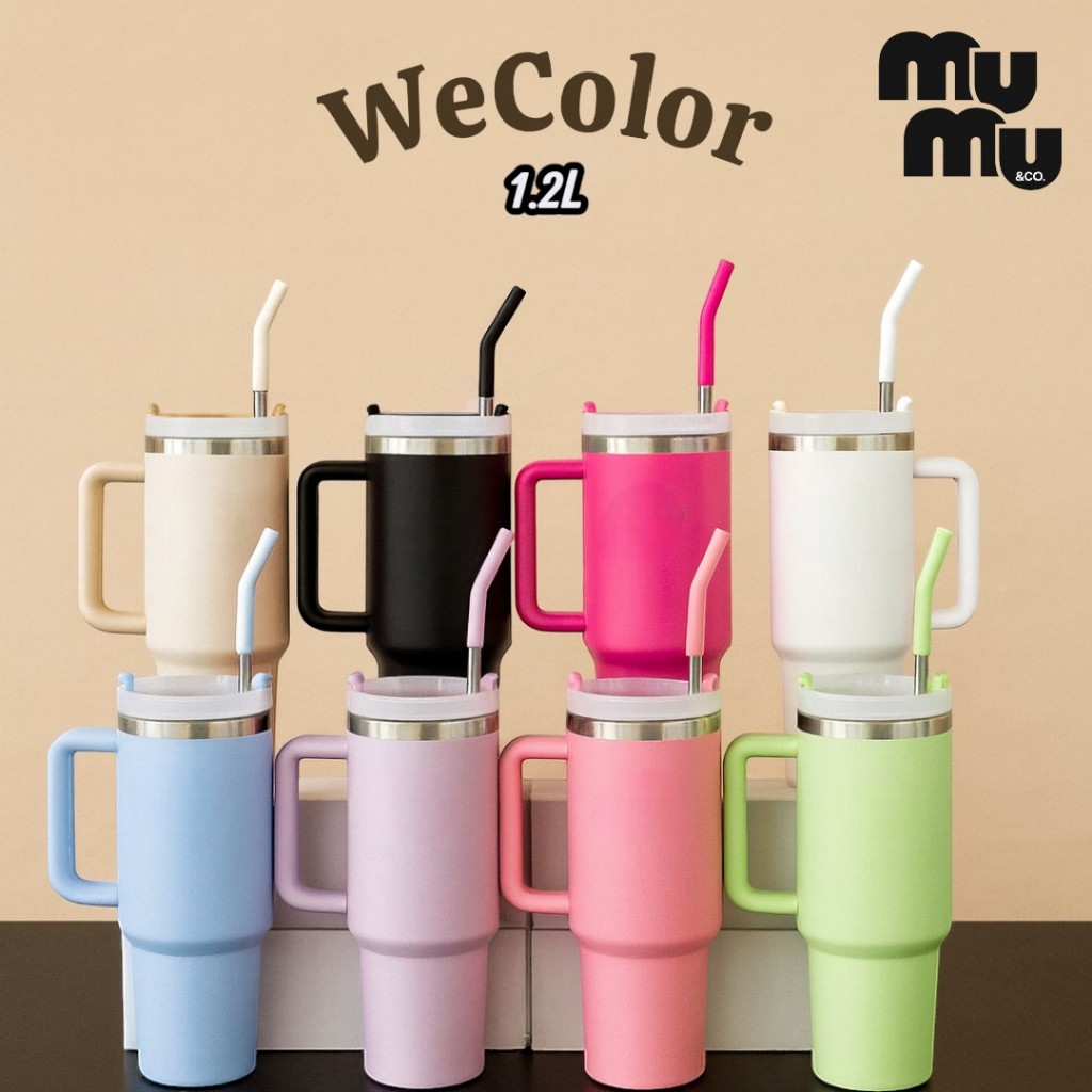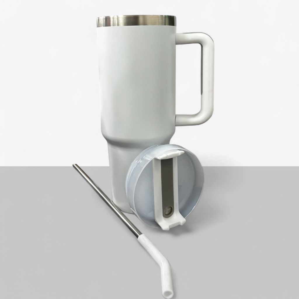 Copo Térmico Inox Portátil 1200ml/1.2L Canudo Inox com Alça nas Cores Pasteis Logo ST Bebida Gelada
