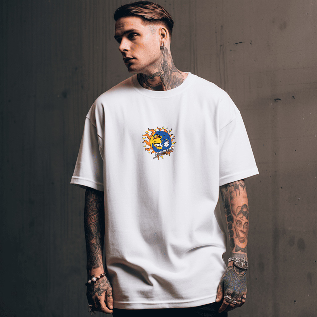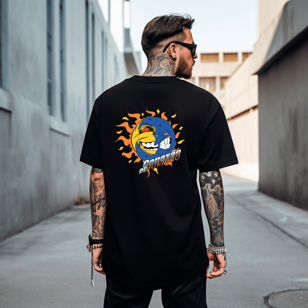 Camiseta Oversized Masculina Feminina Algodão Conexão Horário Sol e Lua Caminhoneiro na Pista Galera da Rodagem Street