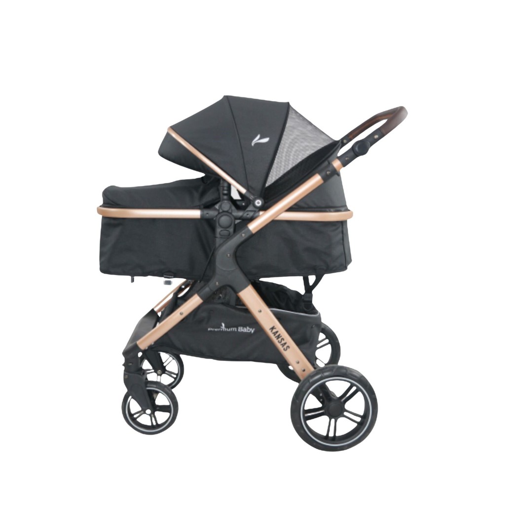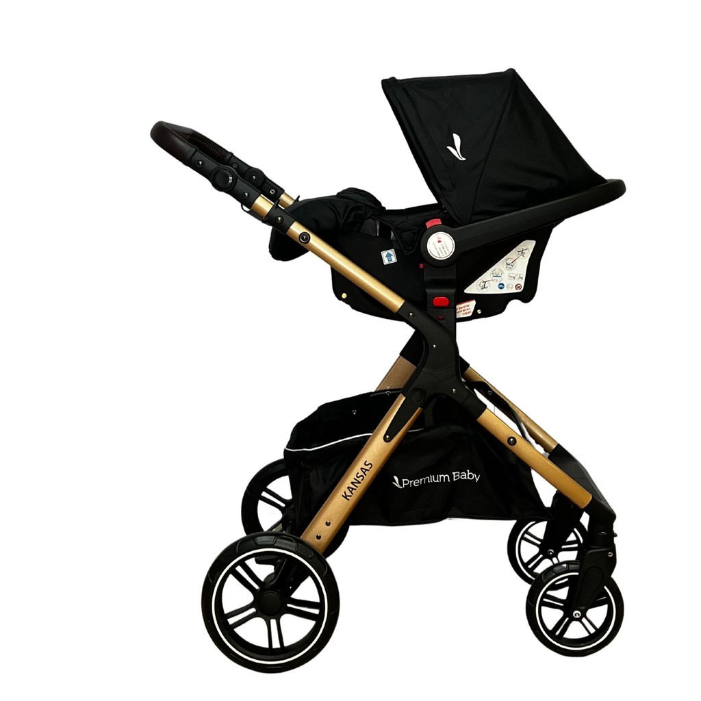 Carrinho Kansas Gold Premium Baby c/ Bebê Conforto e Base