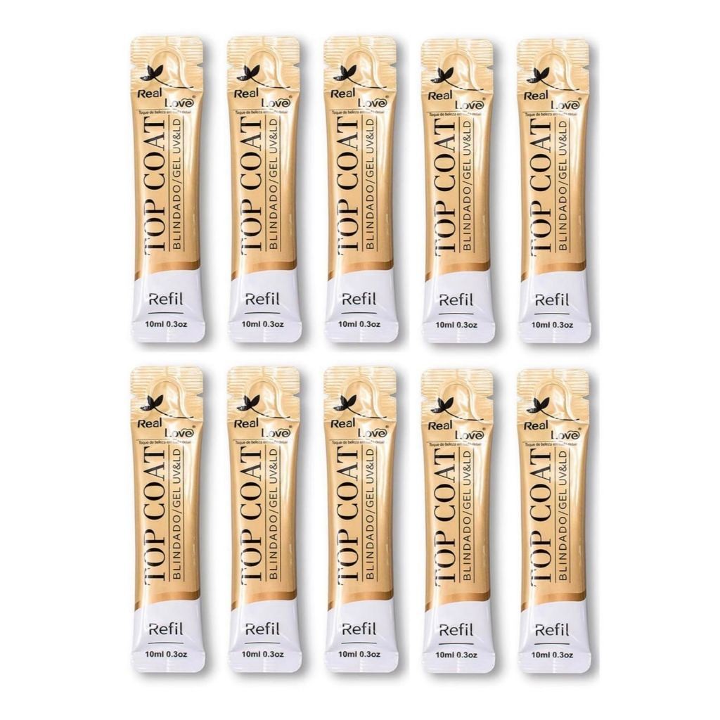 Kit 10 Sachês Base Em Gel Top Coat Blindado Real Love Refil