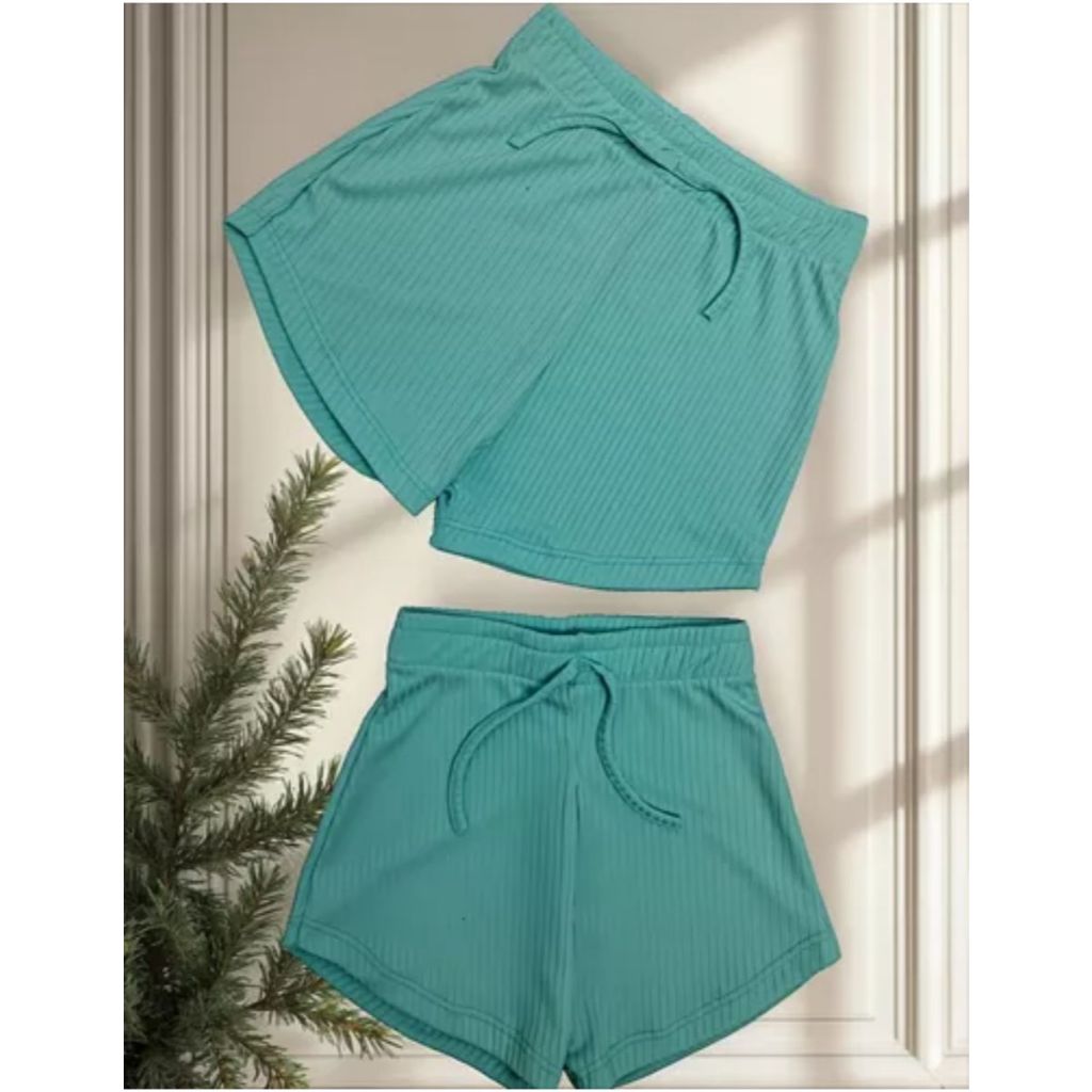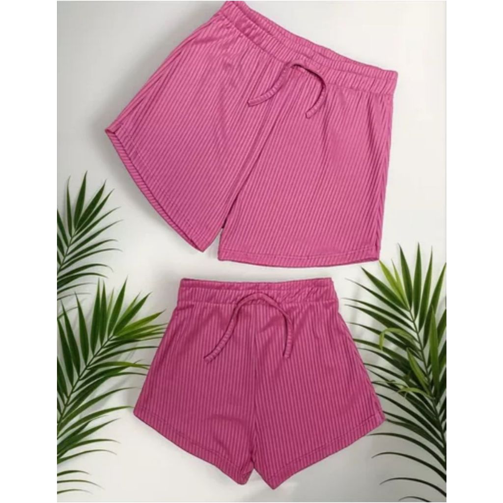 Kit 5 Shorts Infantil Menina Malha Canelada Para Piscina Parque e Clube
