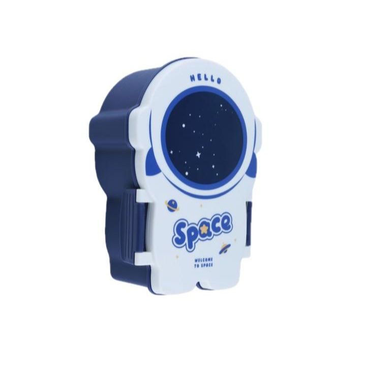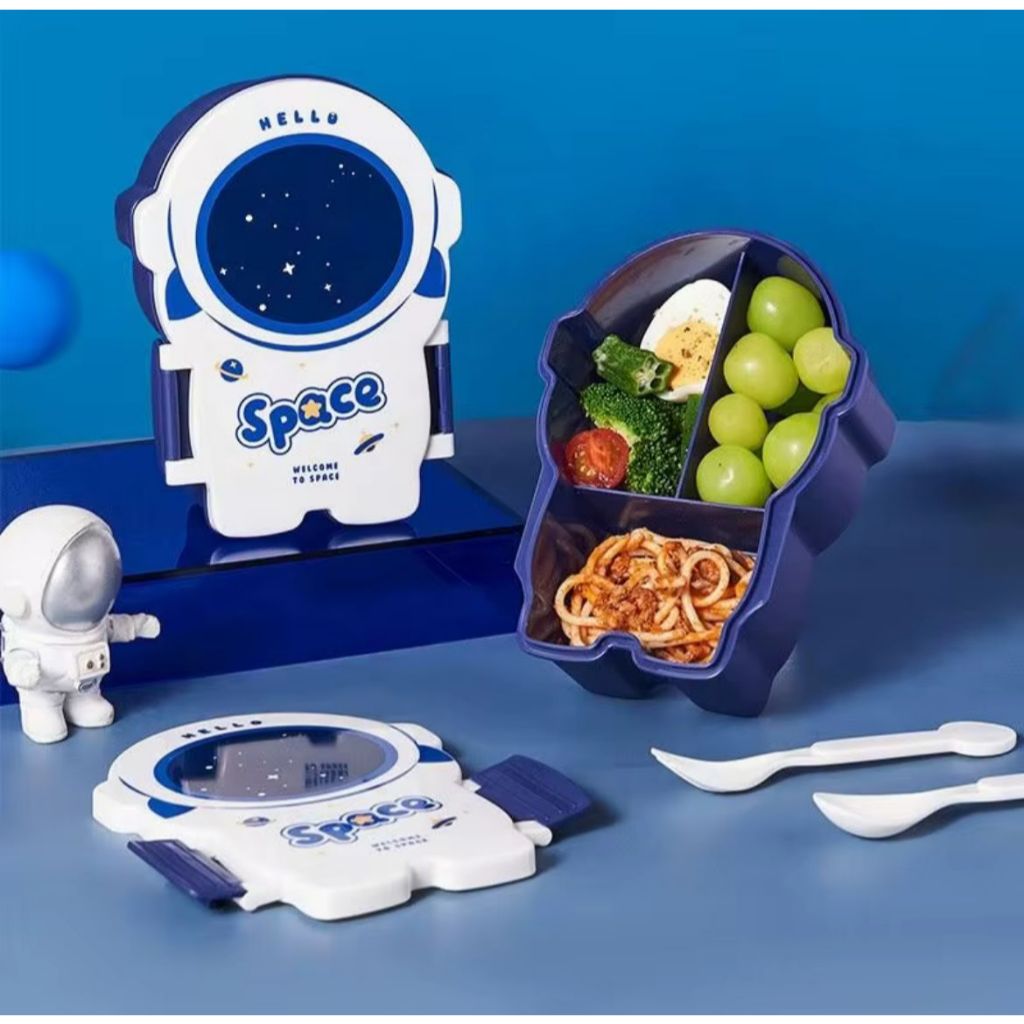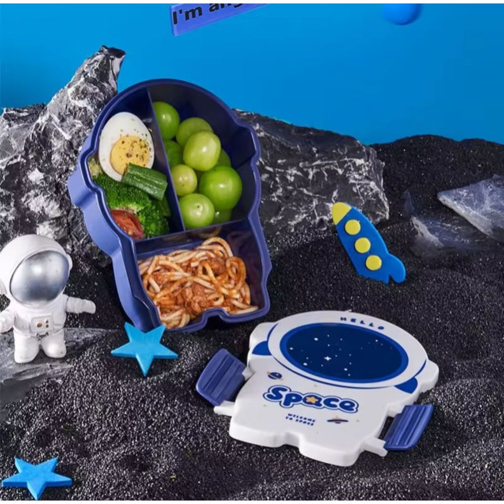 Marmita Lancheira Infantil Astronauta Azul C/ 3 Divisórias E Kit Talheres - Envio Rápido!