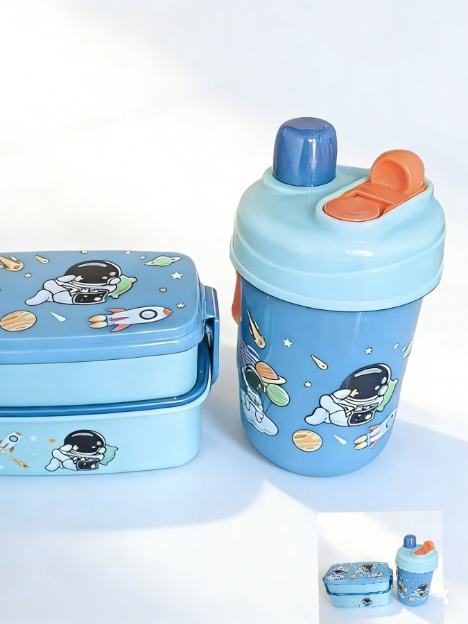 Kti Design Astronauta Azul - Marmita Lancheira Infantil P/ Menina e Menino com Garrafa